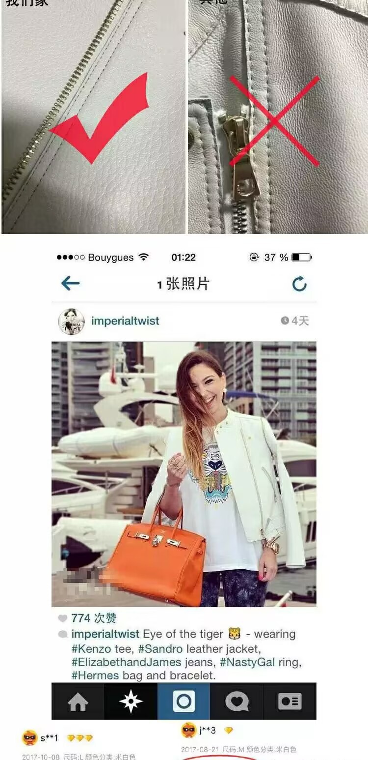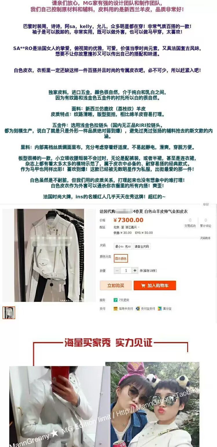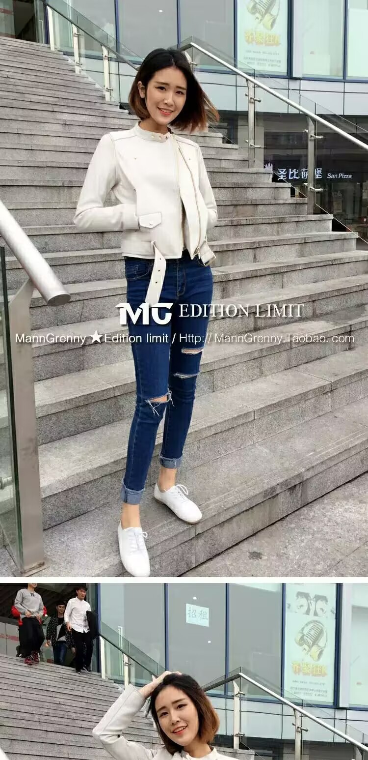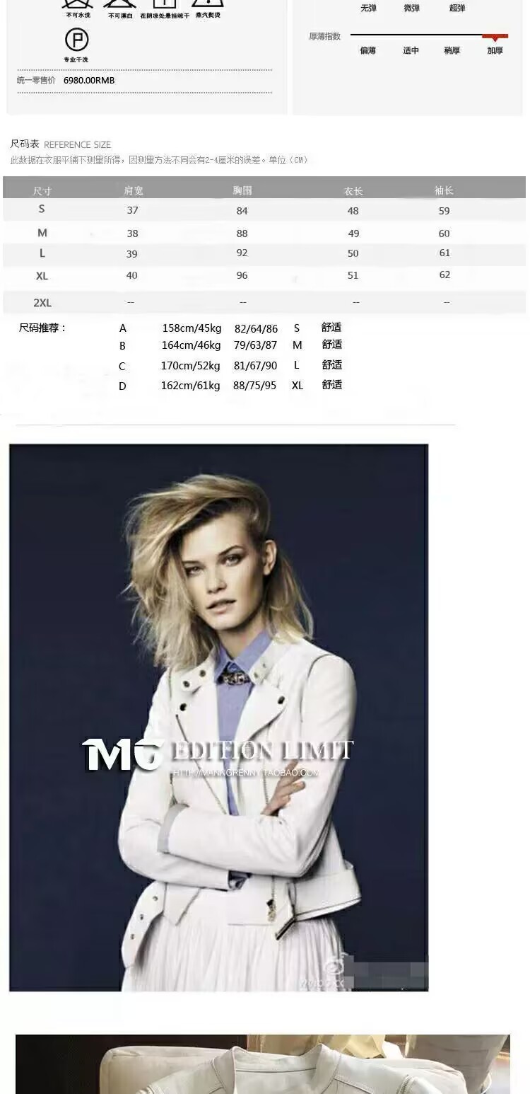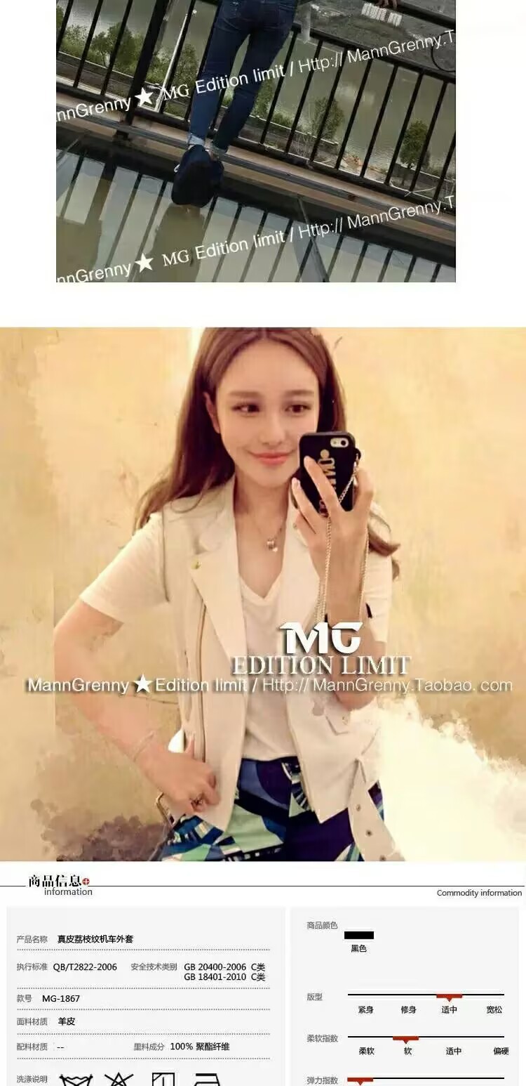MG 하이엔드 스타 같은 스타일 101.15kg 양가죽 자켓 정품 가죽 자켓 여성 짧은 흰색 오토바이 자켓스토어 가기
