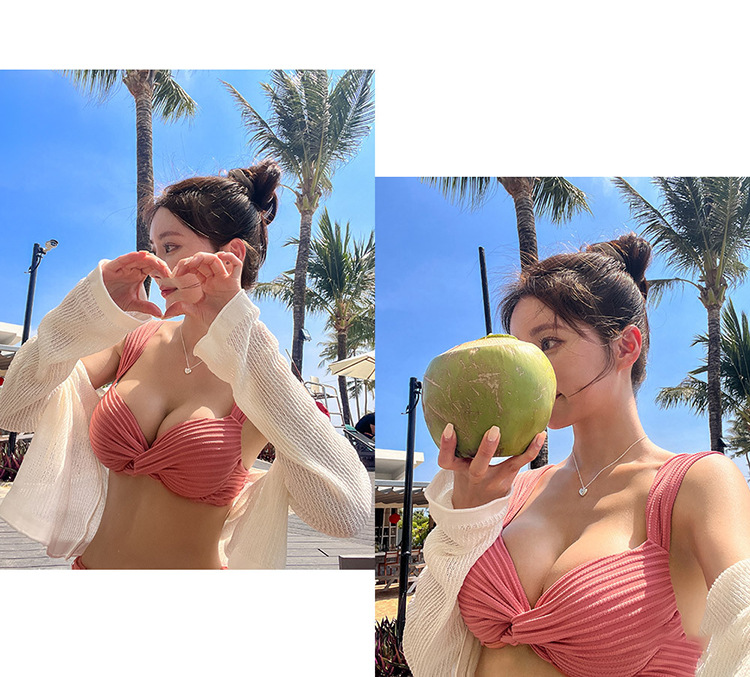 3 색 하이 엔드 한국 2023 새로운 비키니 하이 웨이스트 스트라이프 스플릿 수영복 여성 스포츠 수영복 편안함