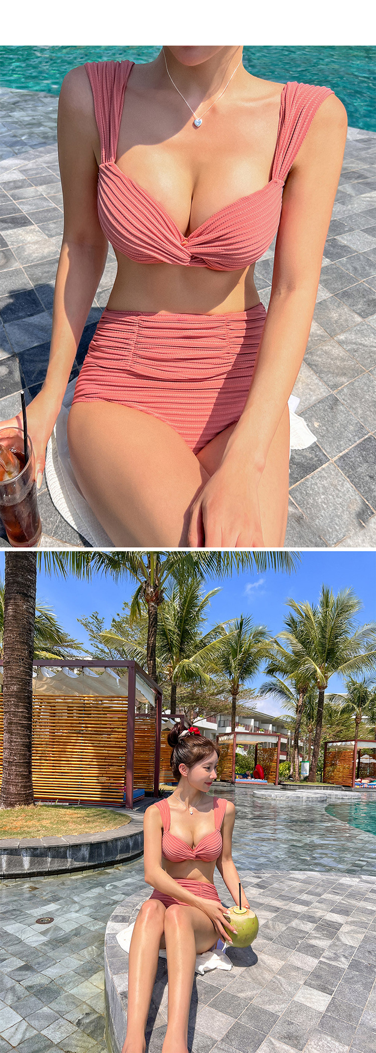 3 색 하이 엔드 한국 2023 새로운 비키니 하이 웨이스트 스트라이프 스플릿 수영복 여성 스포츠 수영복 편안함스토어 가기