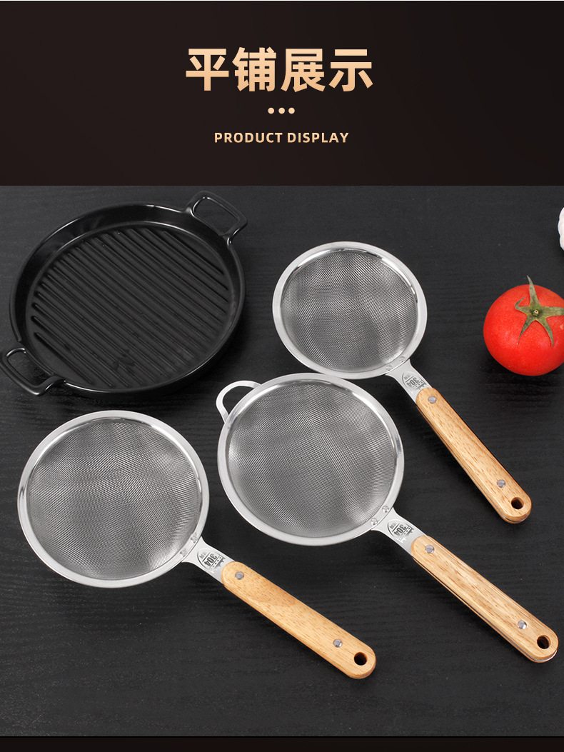 스테인레스 스틸 나무 손잡이 소쿠리 단일 귀 오일 스푼 가정용 주방 두유 필터 주스 추출기 메쉬