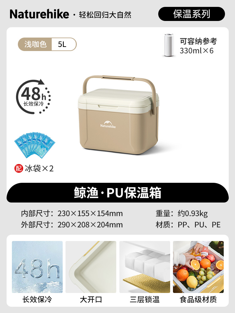 • 연한 카키색/5L [48시간 보냉 지속] 식품 등급 PP 내피