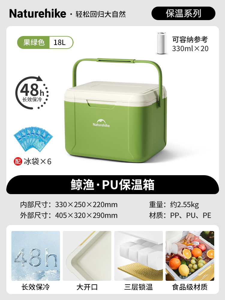 • 후르츠그린/18L [48H 장시간 보냉] 식품등급 PP라이너 ₳