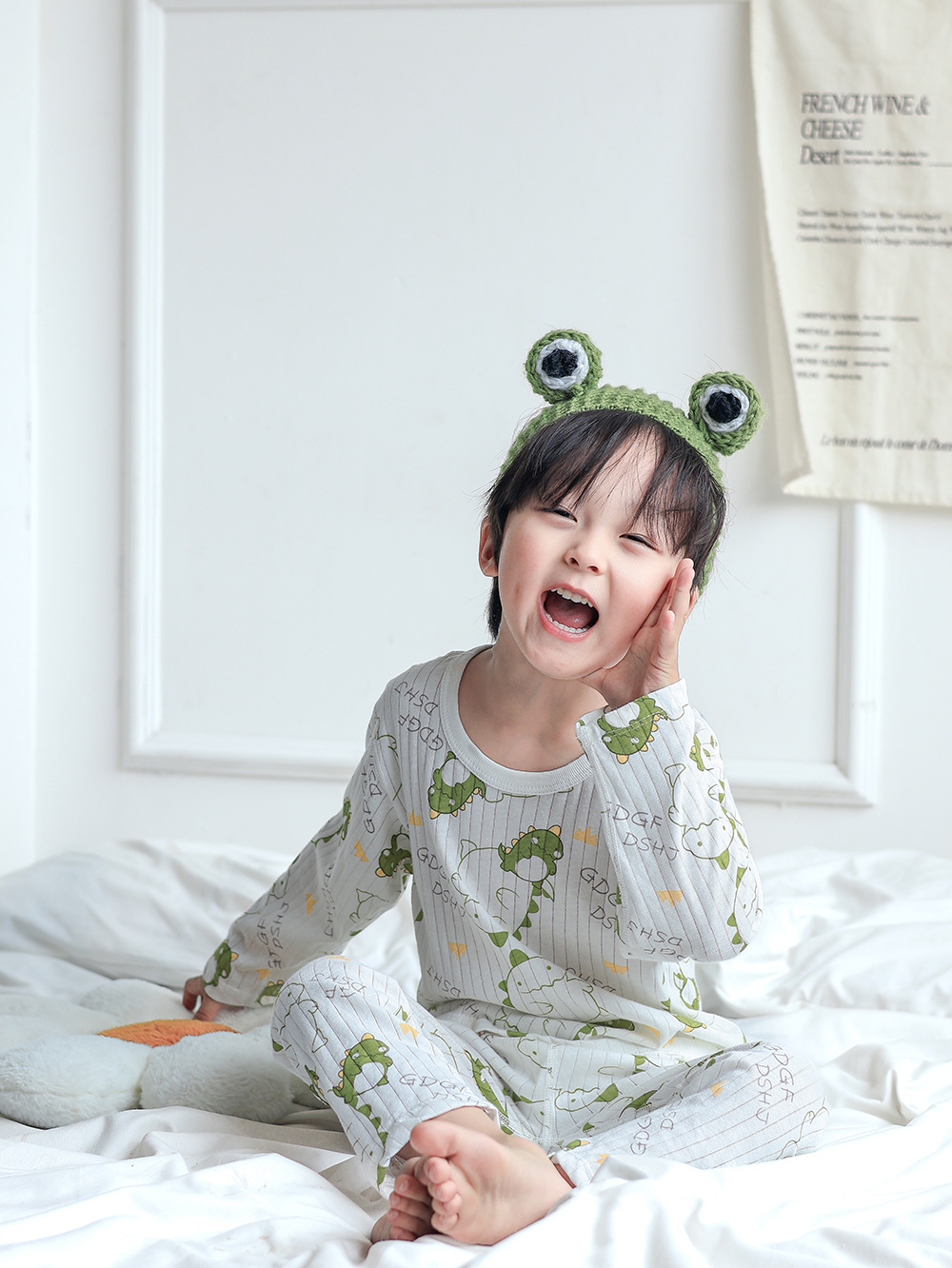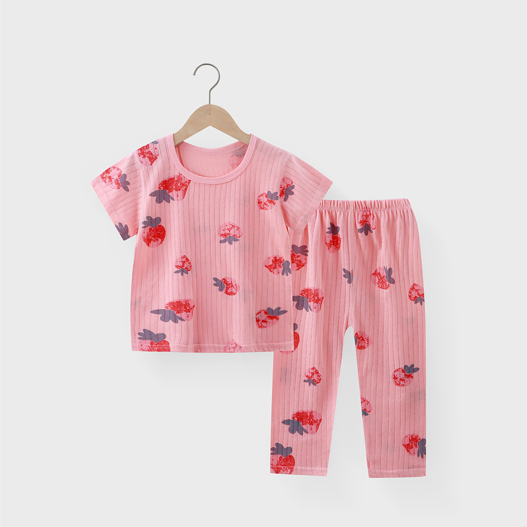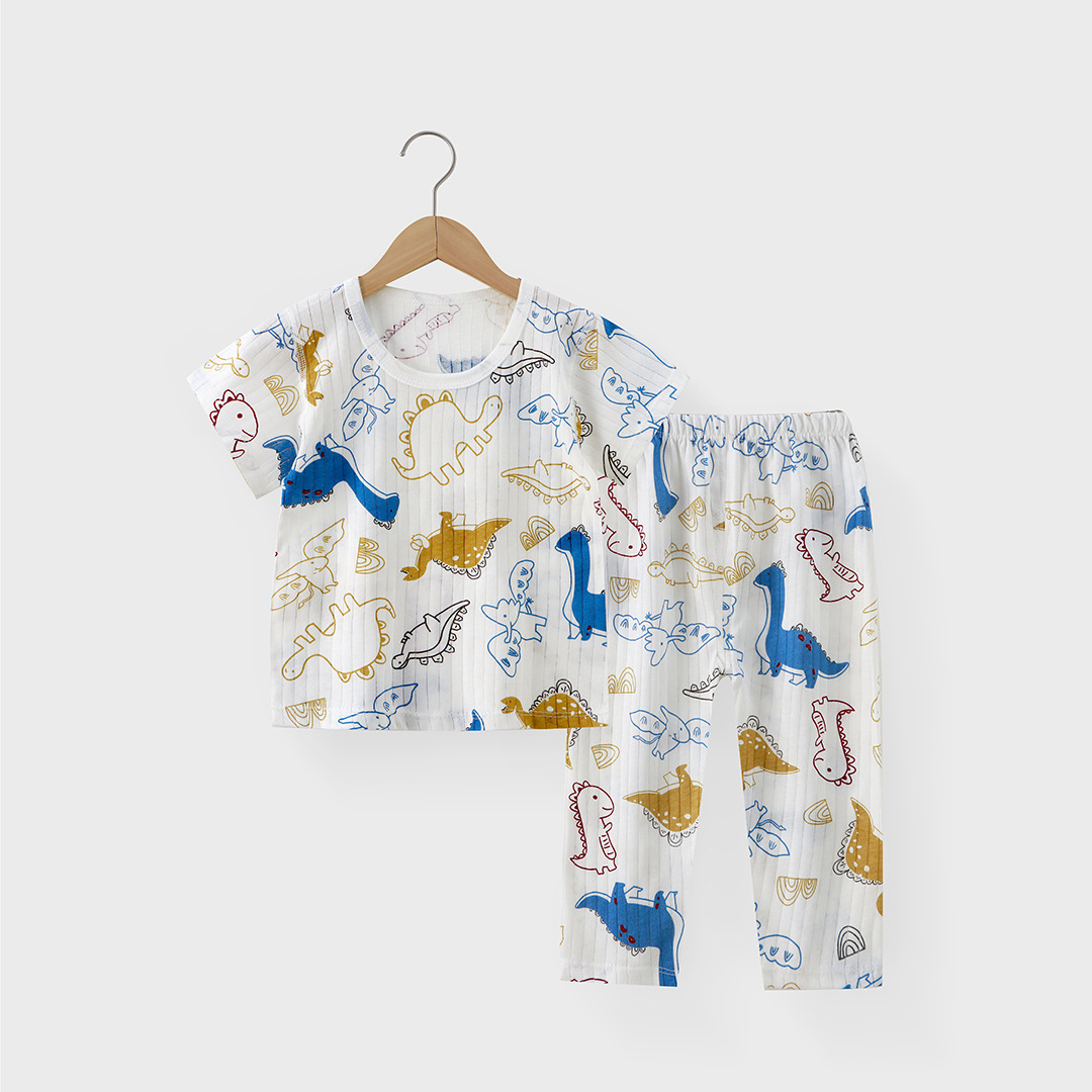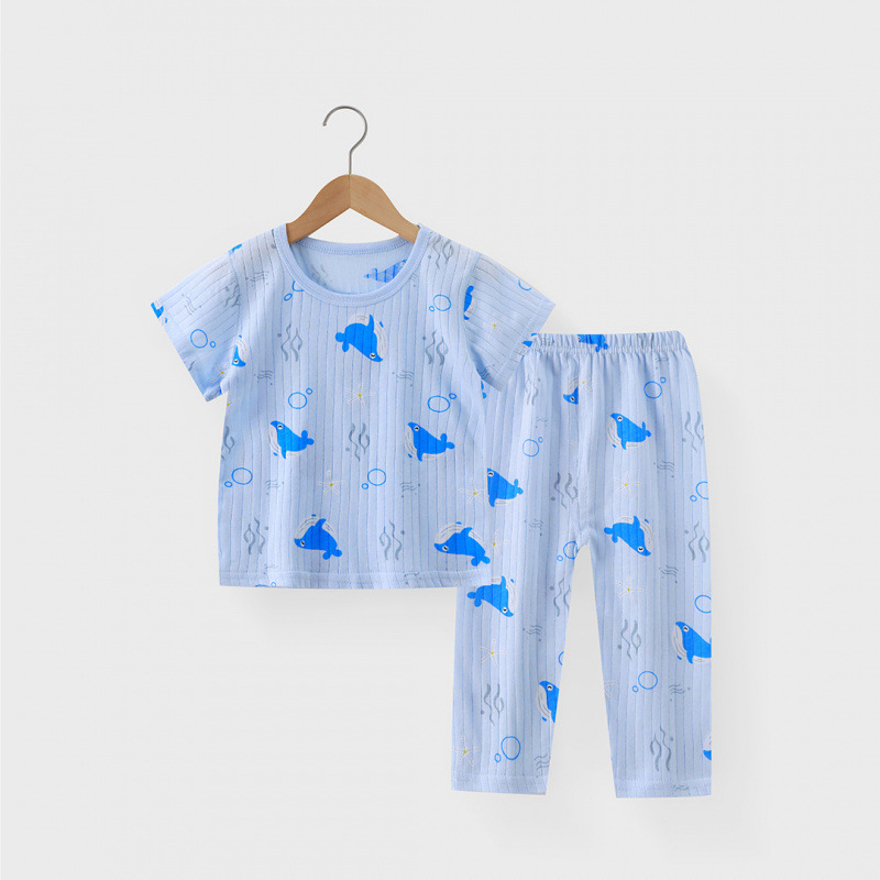 새로운 어린이 가정 의류 순면 에어컨 의류 소년과 소녀 잠옷 세트 여름 반팔 9 점 바지스토어 가기