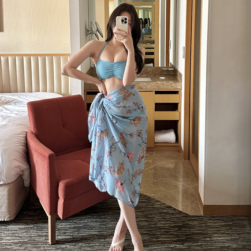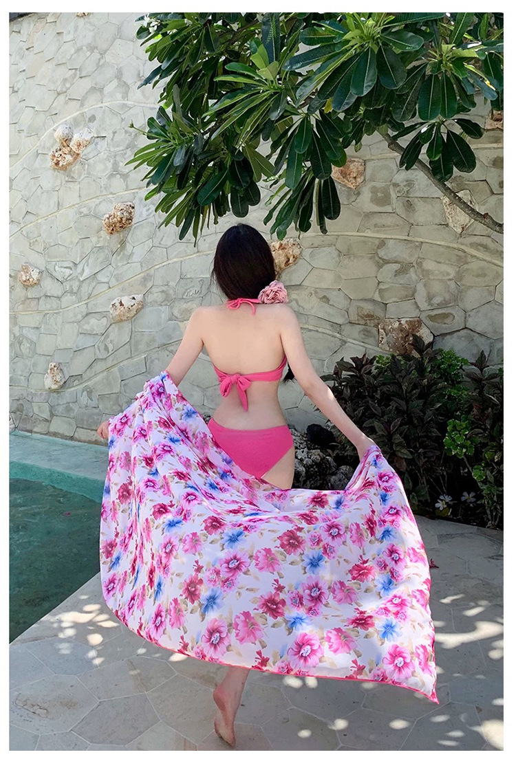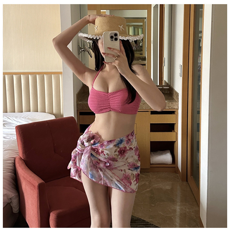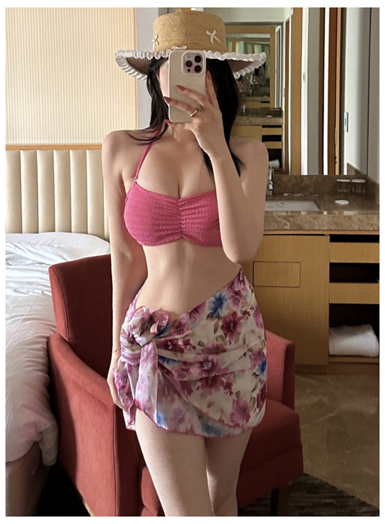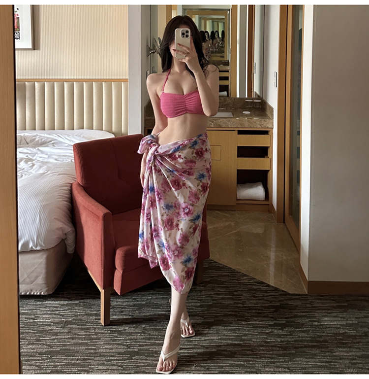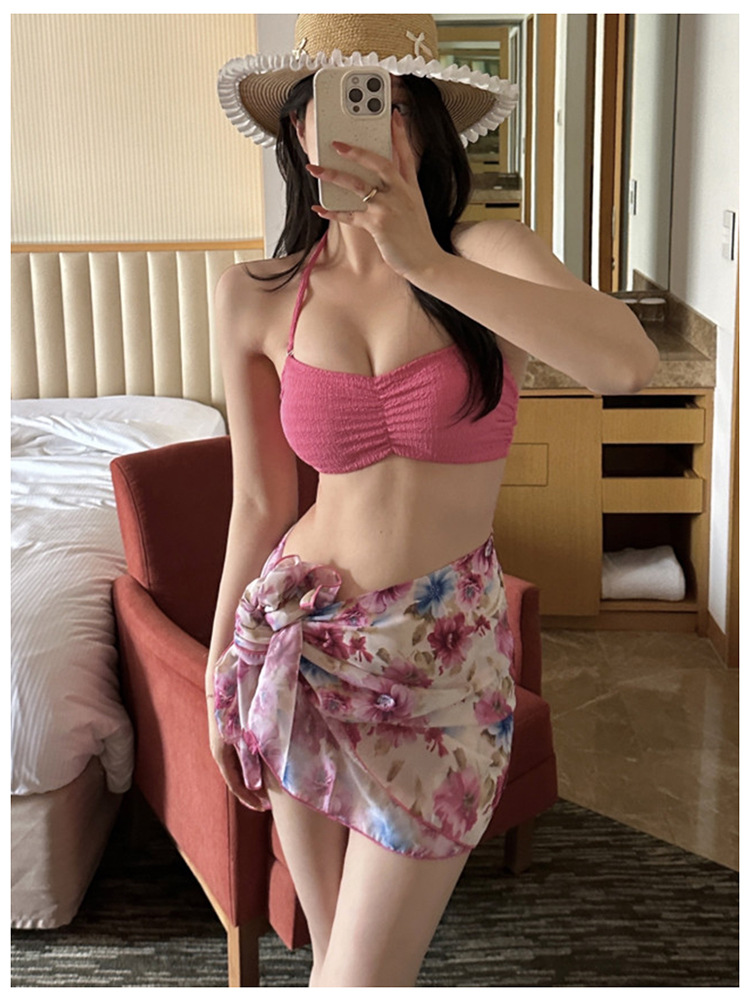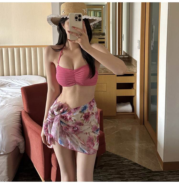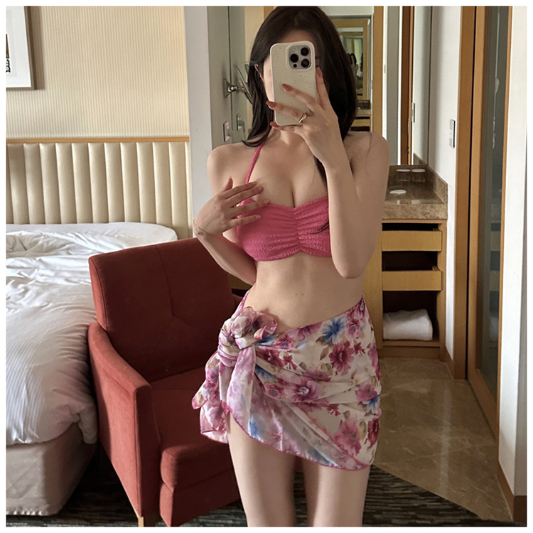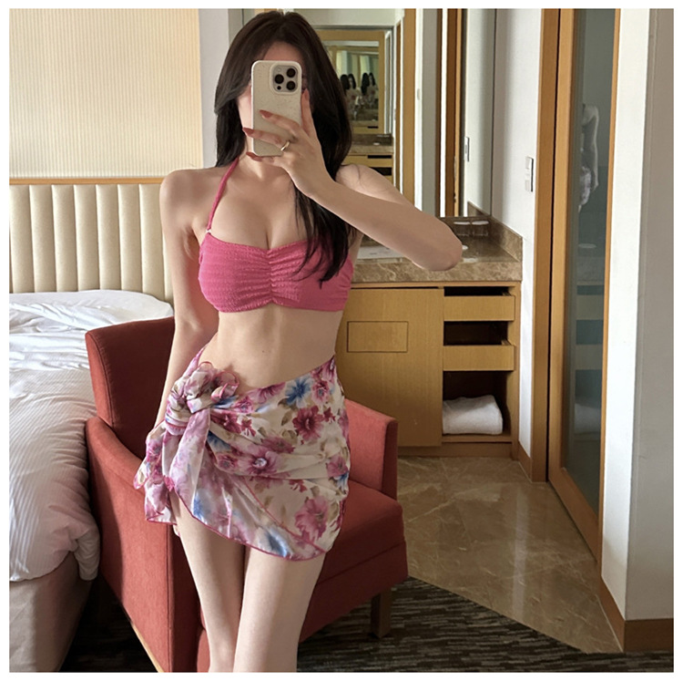 Pure Desire 로즈 레드 화이트 소녀 비키니 랩 스커트 스플릿 커버 살 슬리밍 섹시한 가슴 패드 여름 여성용 휴가 수영복스토어 가기