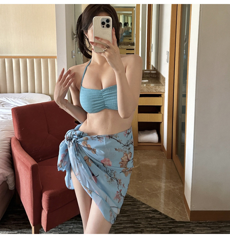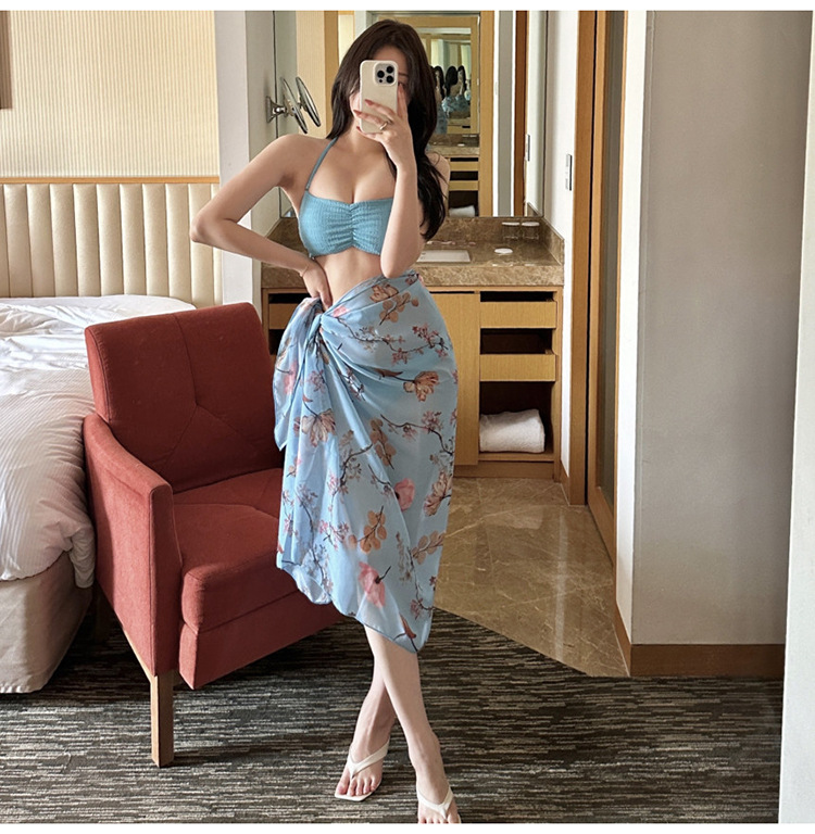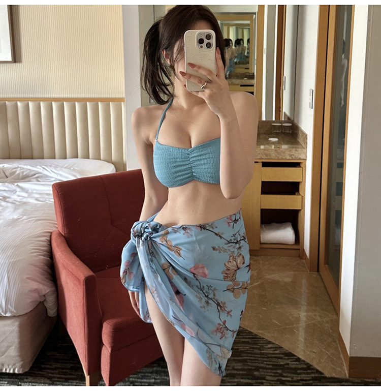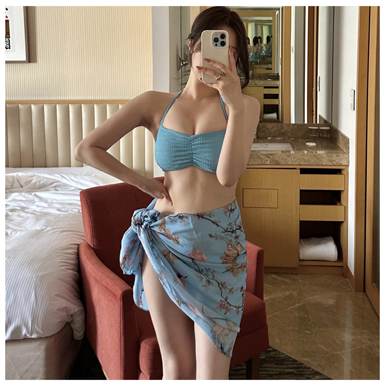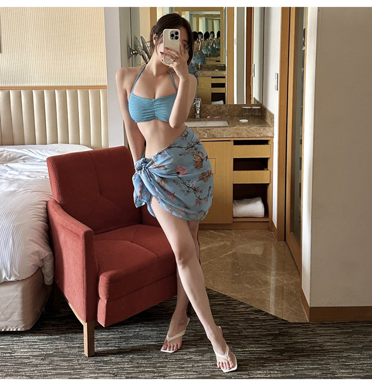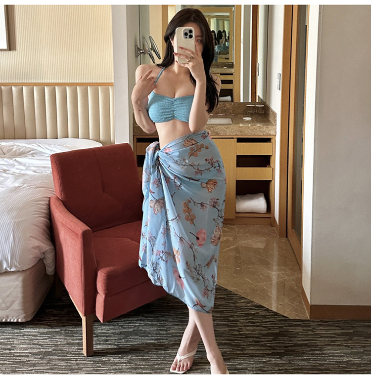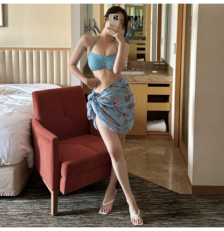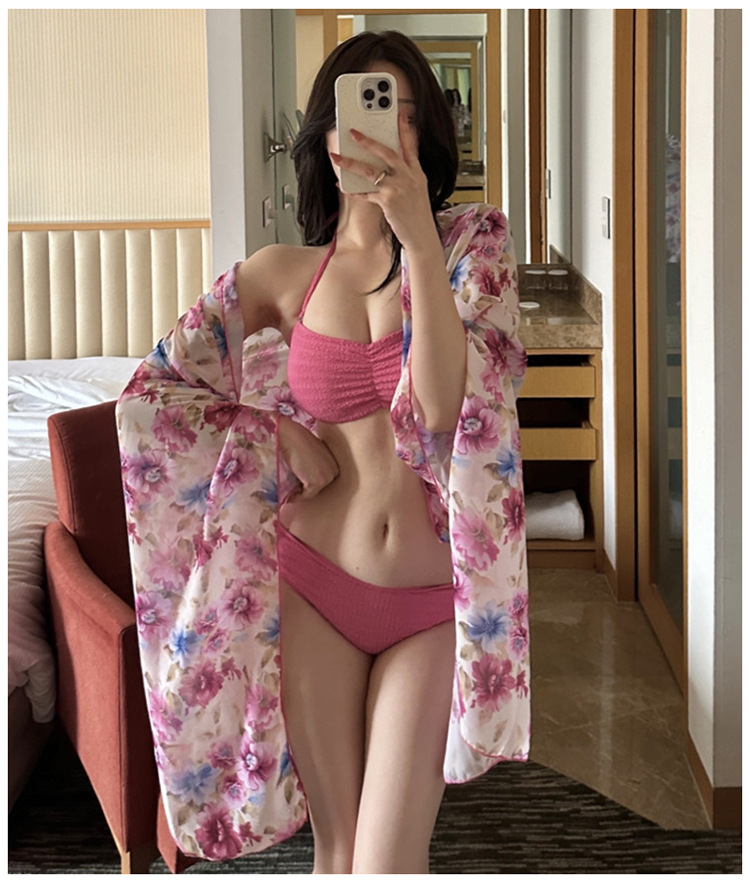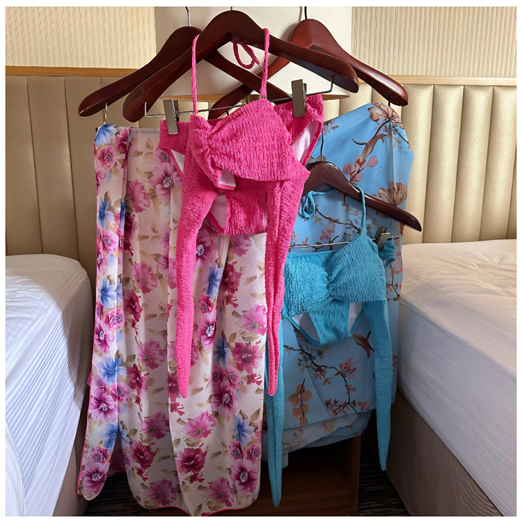 Pure Desire 로즈 레드 화이트 소녀 비키니 랩 스커트 스플릿 커버 살 슬리밍 섹시한 가슴 패드 여름 여성용 휴가 수영복스토어 가기