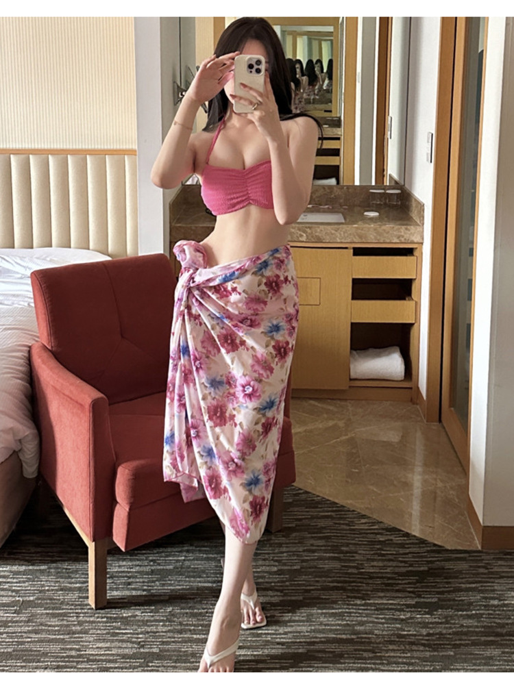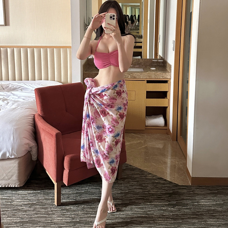 Pure Desire 로즈 레드 화이트 소녀 비키니 랩 스커트 스플릿 커버 살 슬리밍 섹시한 가슴 패드 여름 여성용 휴가 수영복