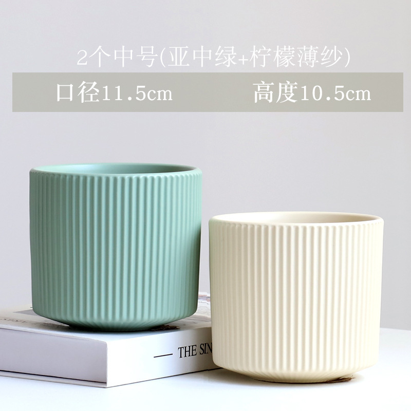 세라믹 화분, 무광택 북유럽 심플 화분, 트레이가 있는 대형 탁상용 낙엽수, 다육 나비 난초, 녹색 식물 화분