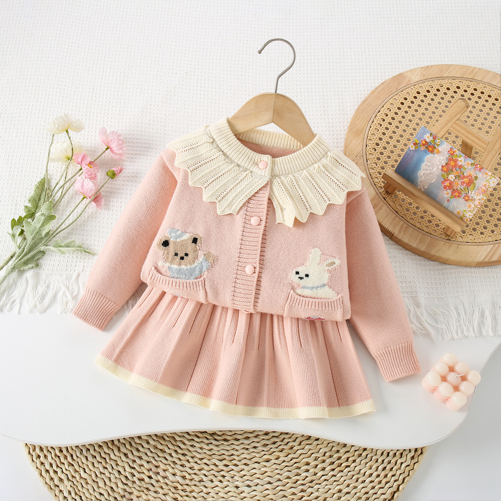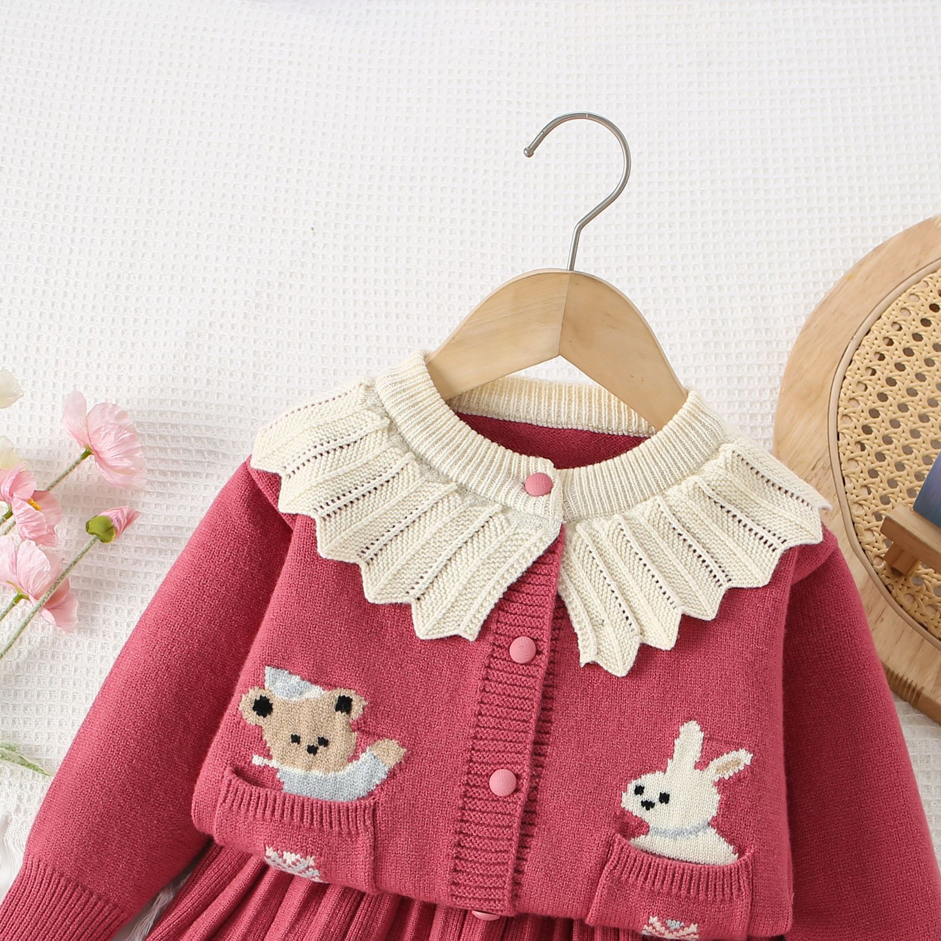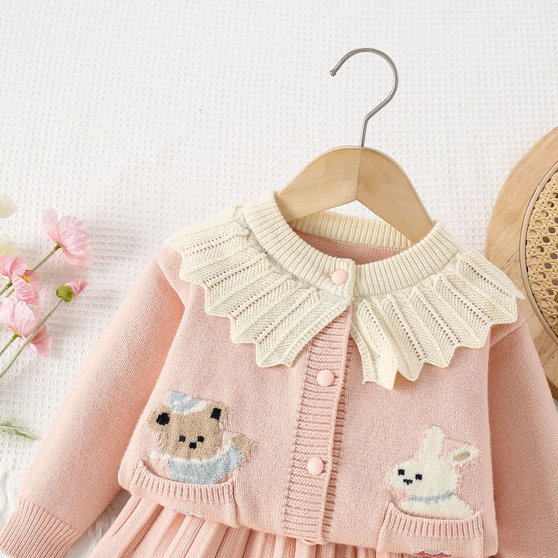 소녀 스웨터 가을, 겨울 새로운 한국 스타일 만화 귀여운 토끼 모직 코트 곰 어린이 니트 카디건