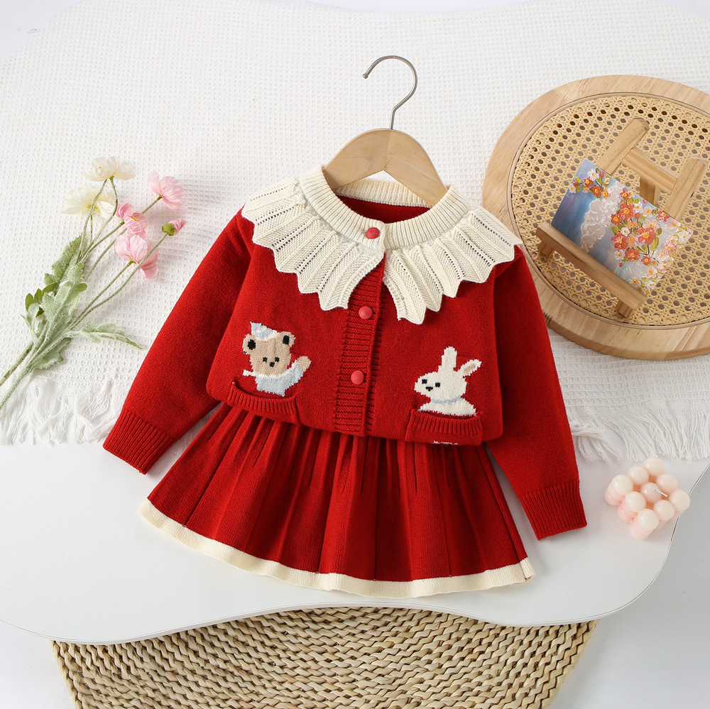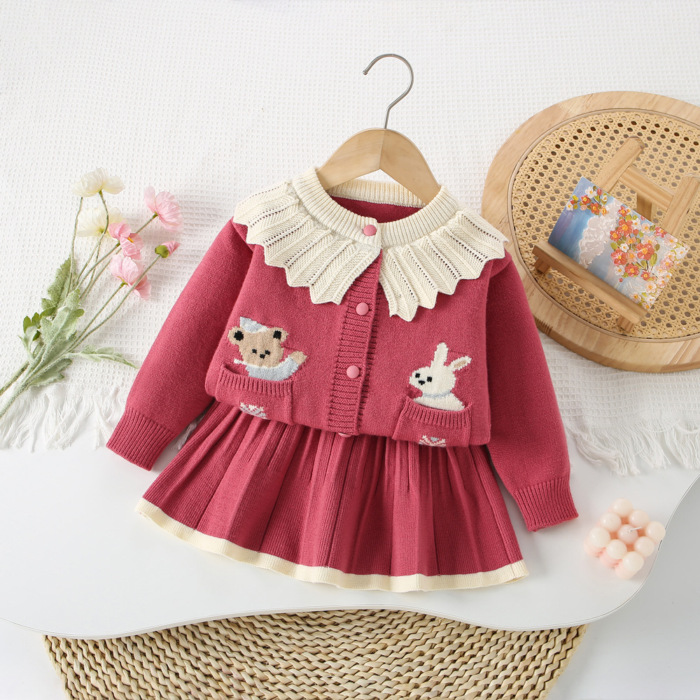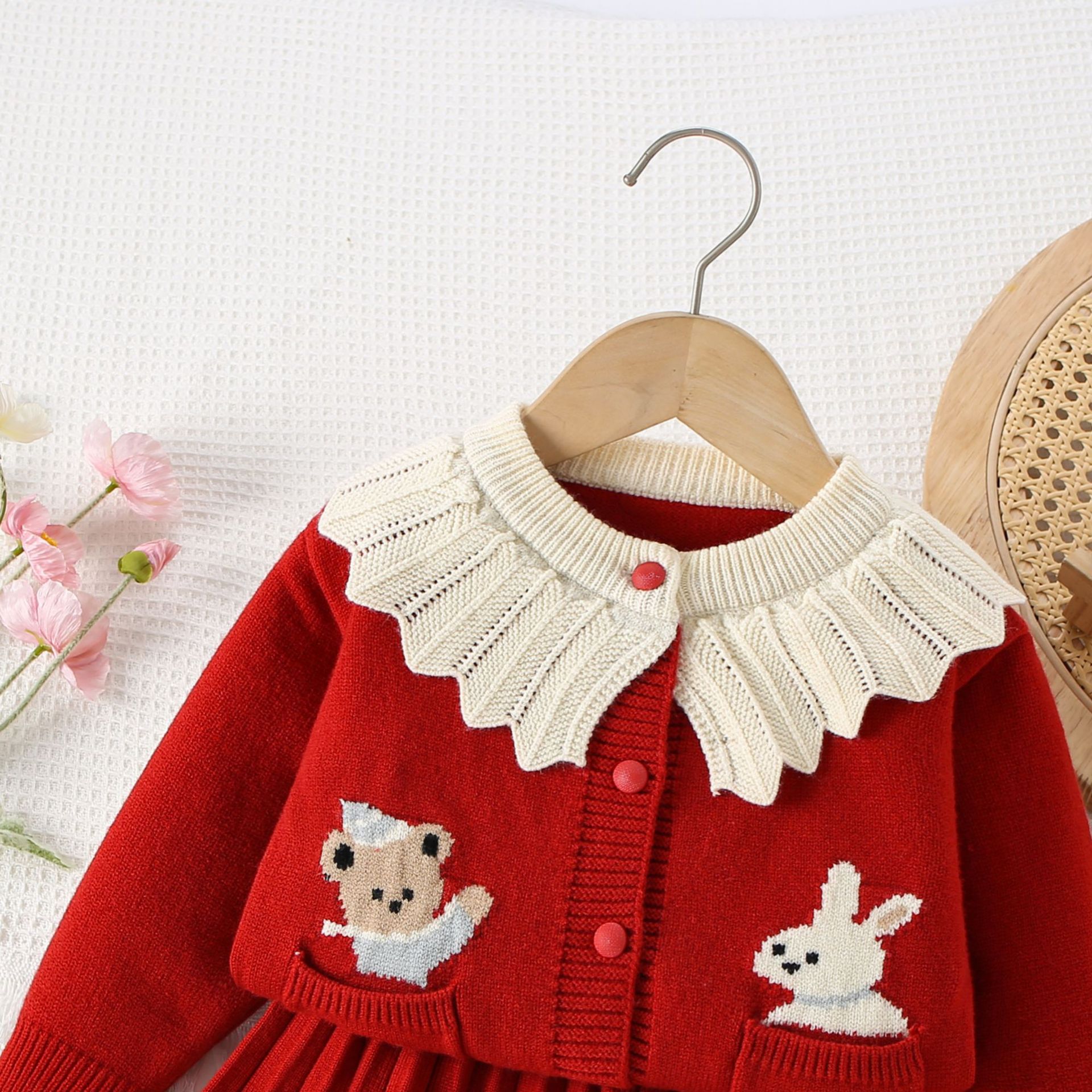 소녀 스웨터 가을, 겨울 새로운 한국 스타일 만화 귀여운 토끼 모직 코트 곰 어린이 니트 카디건