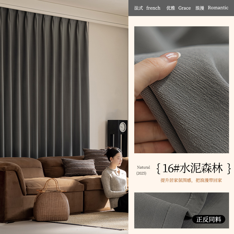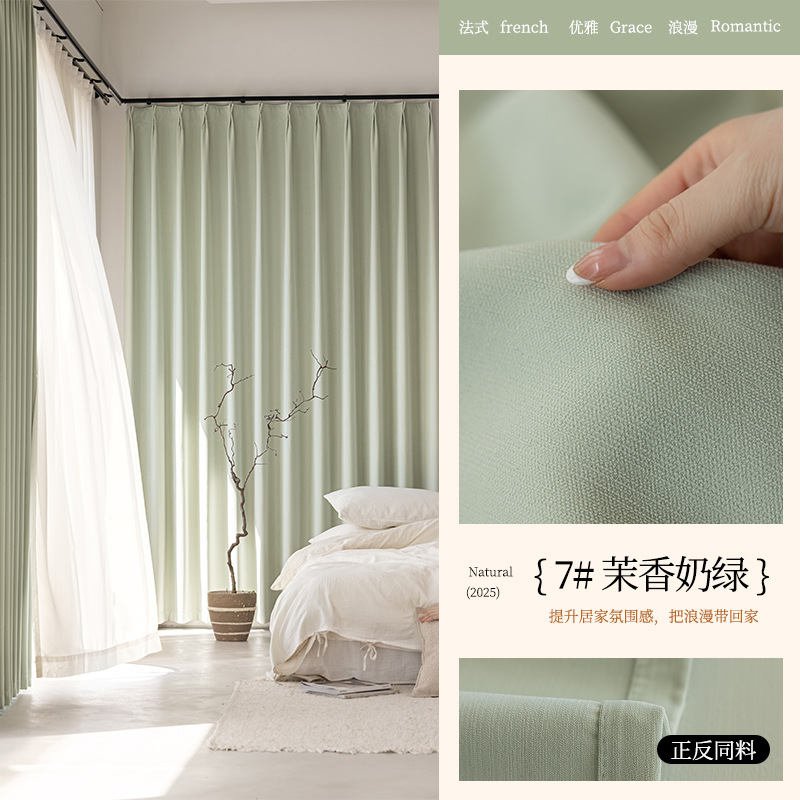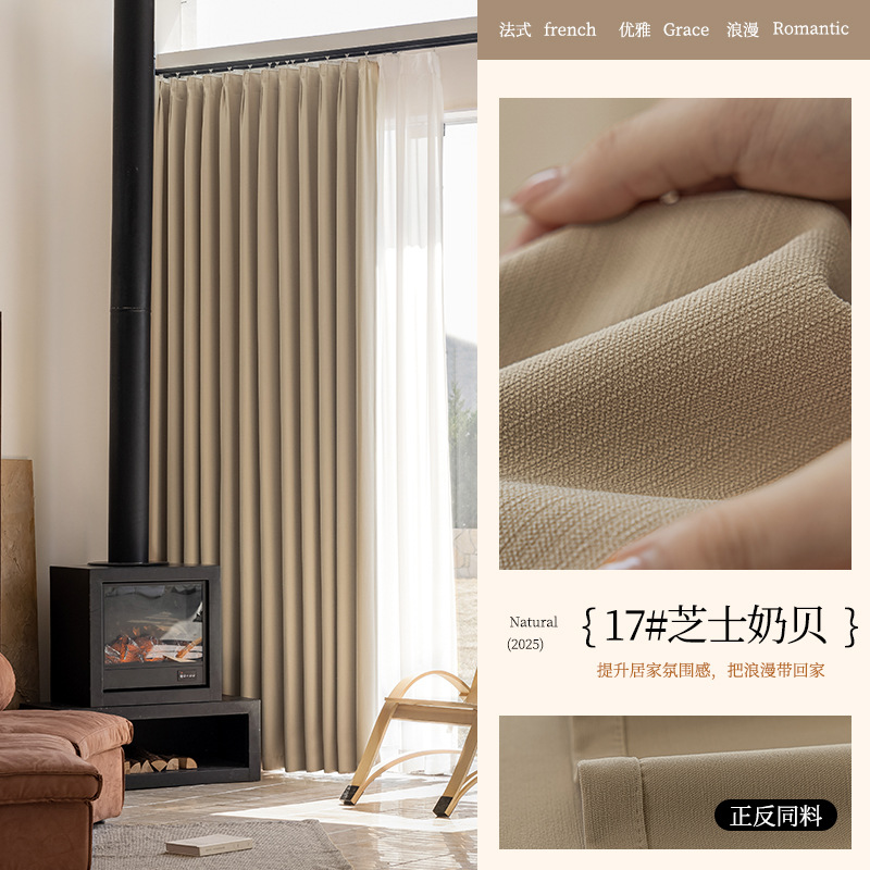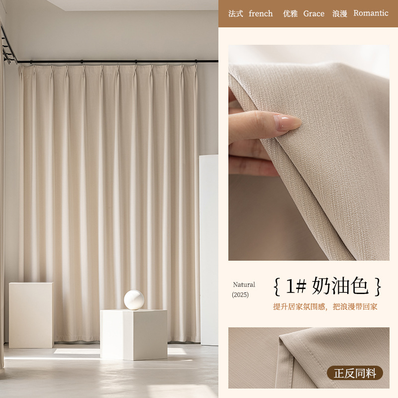 2025 양면 동색 셔닐 암막 커튼 침실 거실 크림 스타일 엄마와 아이용 원단 암막 업그레이드