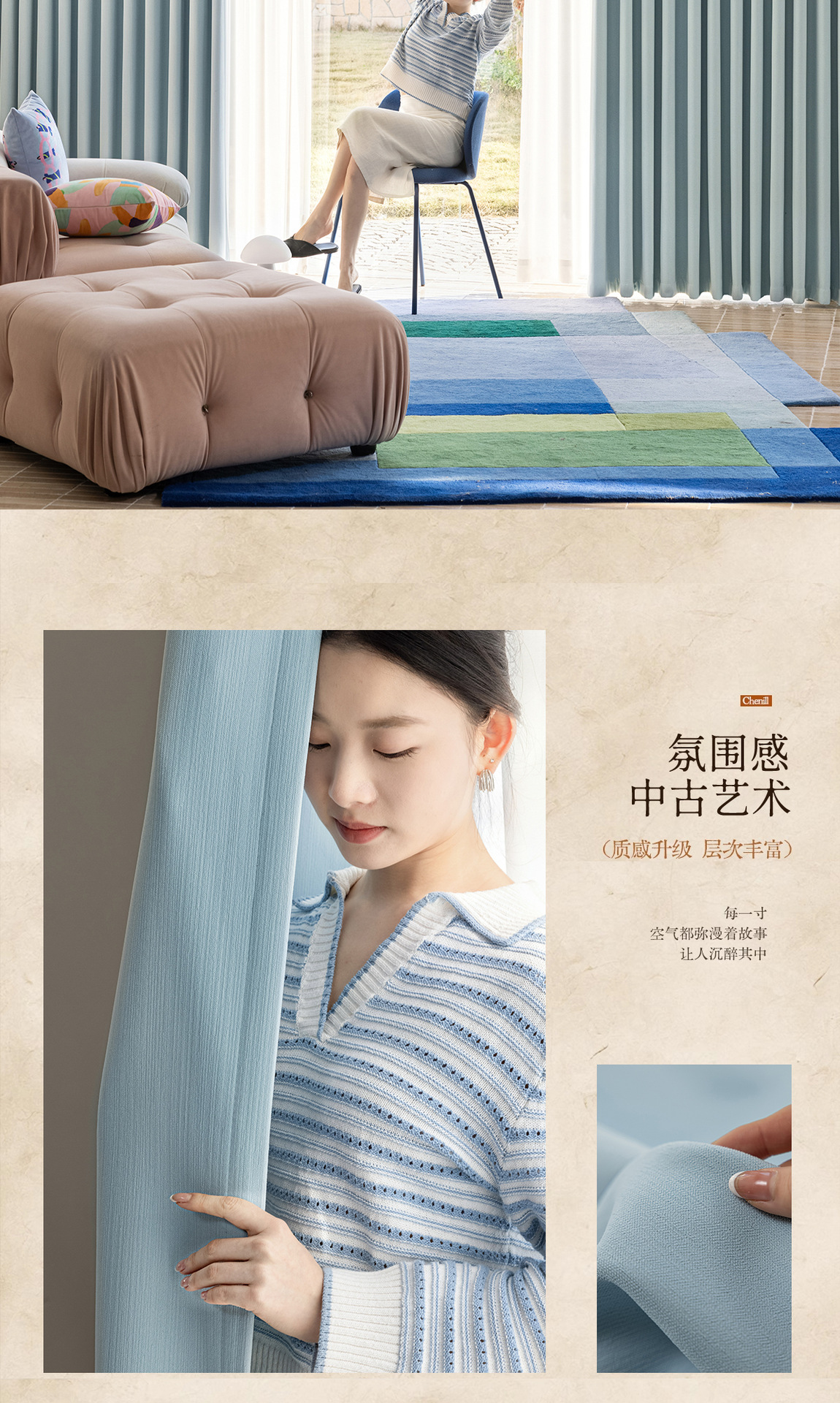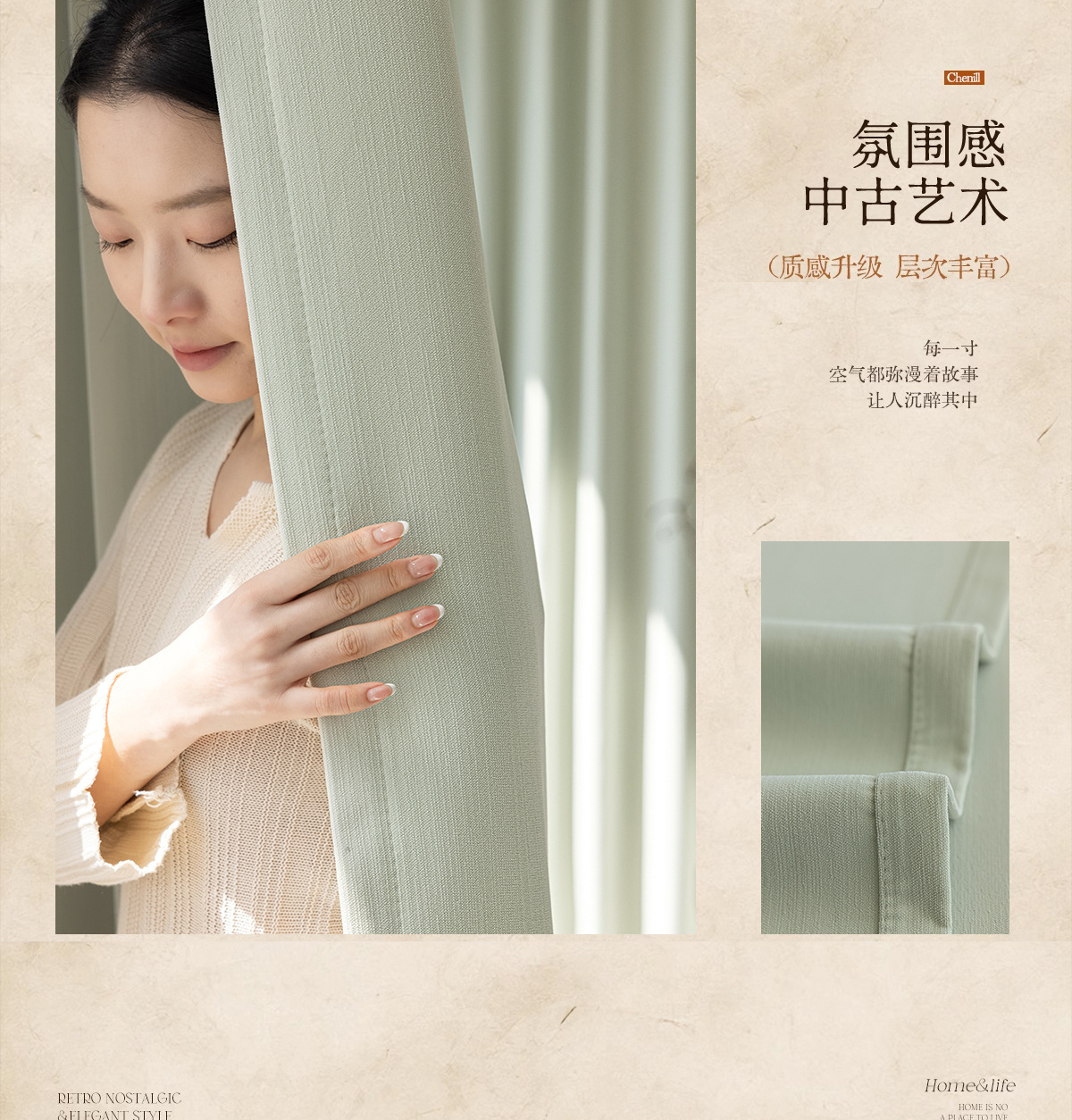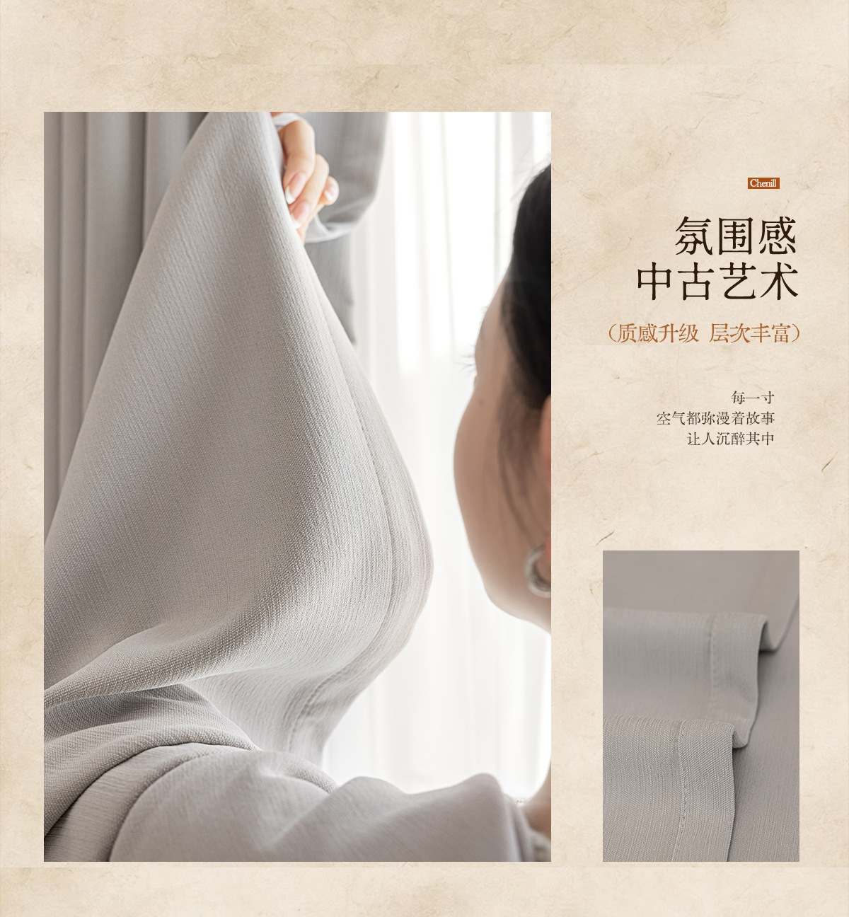 2025 양면 동색 셔닐 암막 커튼 침실 거실 크림 스타일 엄마와 아이용 원단 암막 업그레이드스토어 가기