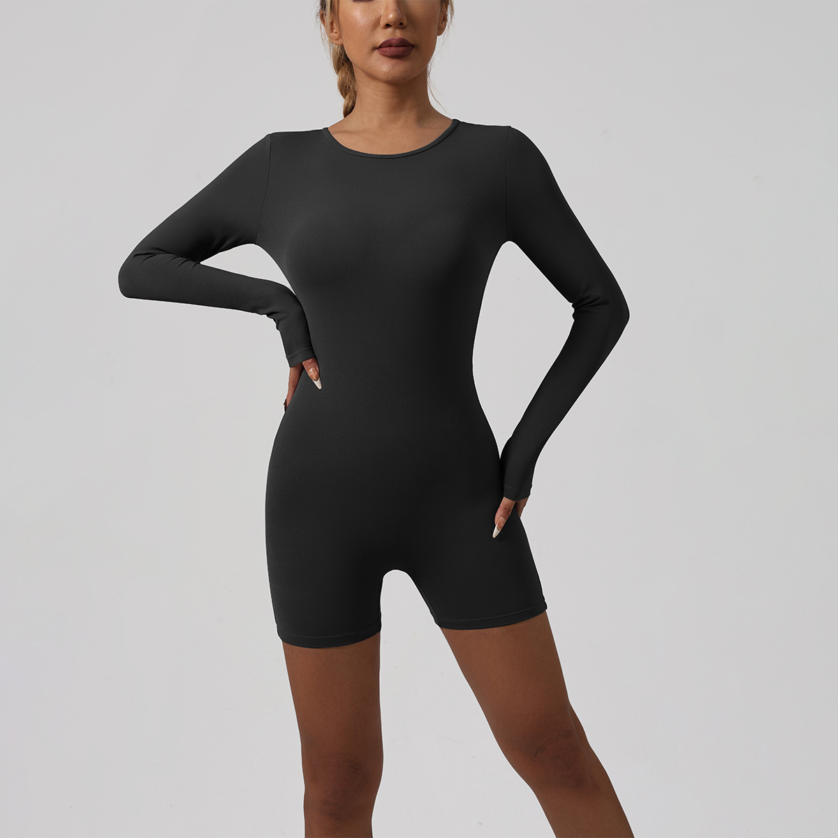 크로스보더 인기 백리스 원피스 요가복, 속건성, 신축성, 타이트핏, 요가 운동용, 힙업 및 몸매 보정, 피트니스복스토어 가기