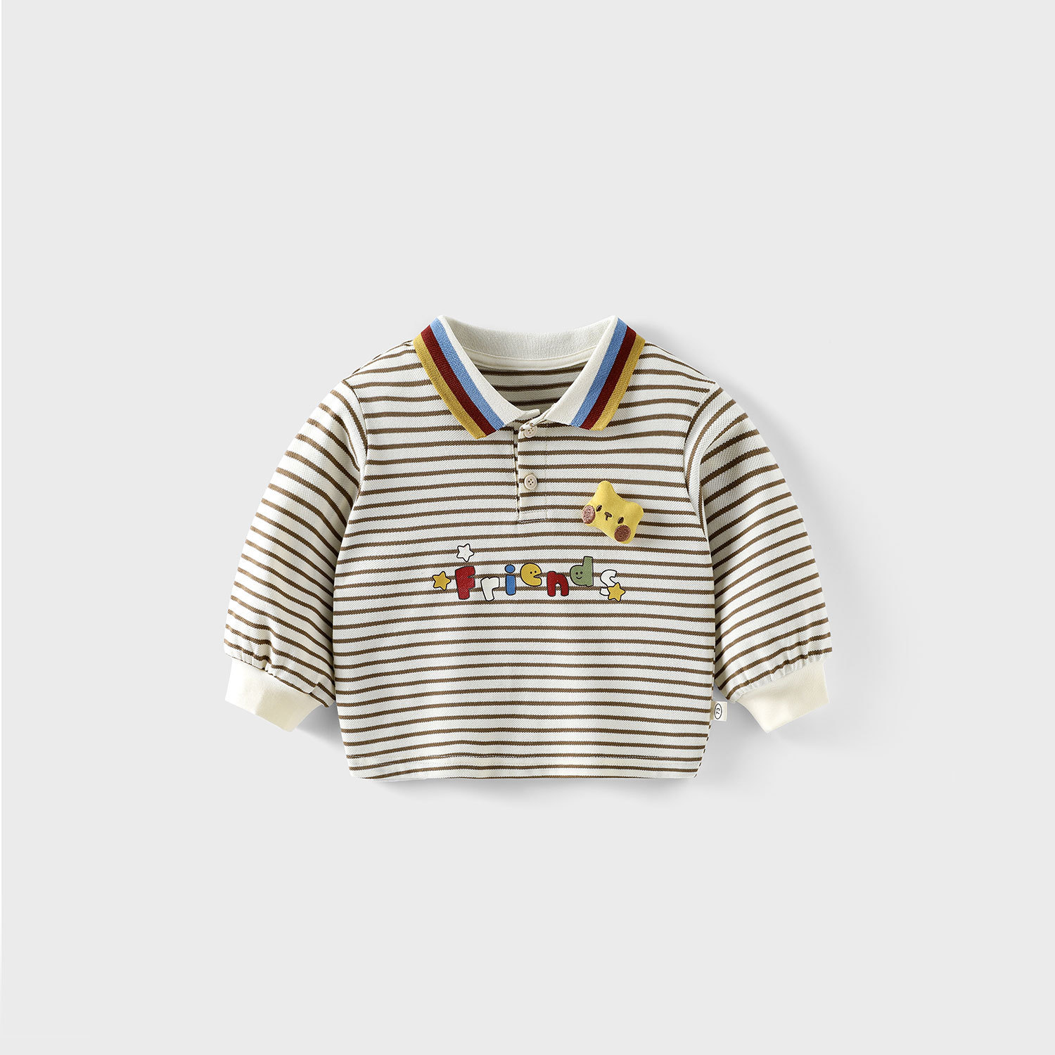 어린이 줄무늬 티셔츠 2025 새로운 가을 소년 인형 만화 바닥 셔츠 아기 한국 스타일 가을 탑 유행스토어 가기