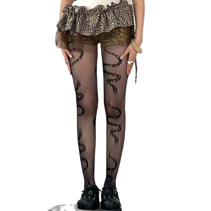 서브컬쳐 스네이크 메쉬 스타킹 펑크 메쉬 아비 스타킹 틈새 핫걸 밀레니얼 스타일 y2k 팬티 스타킹 여성용