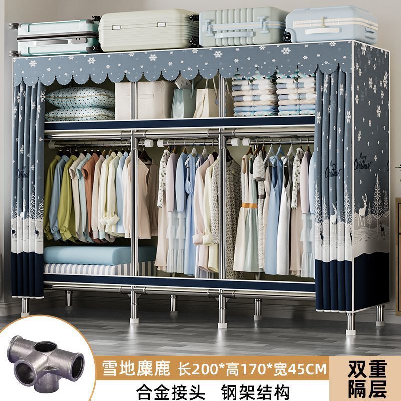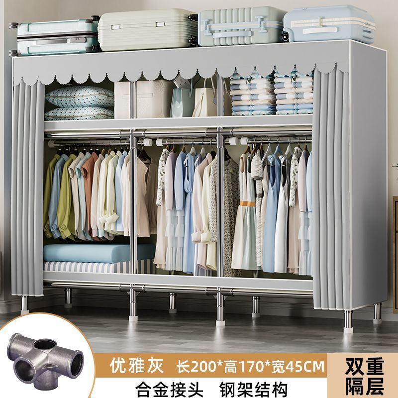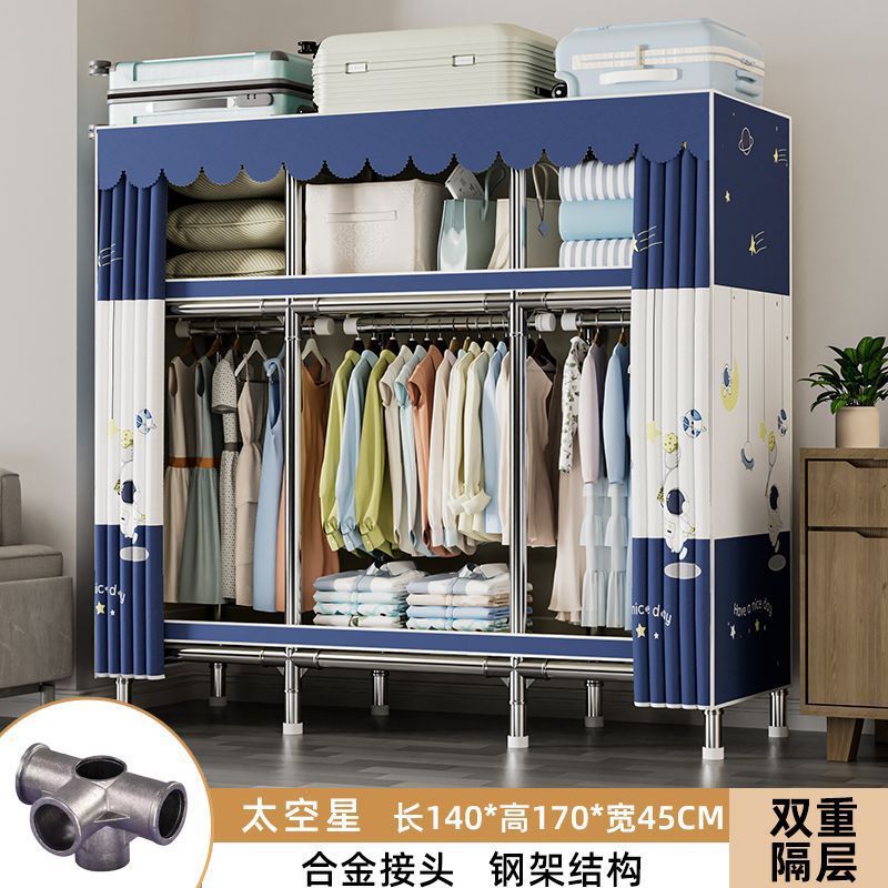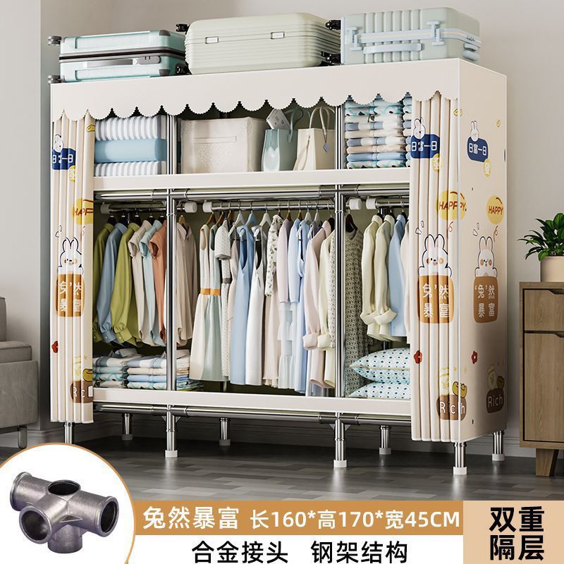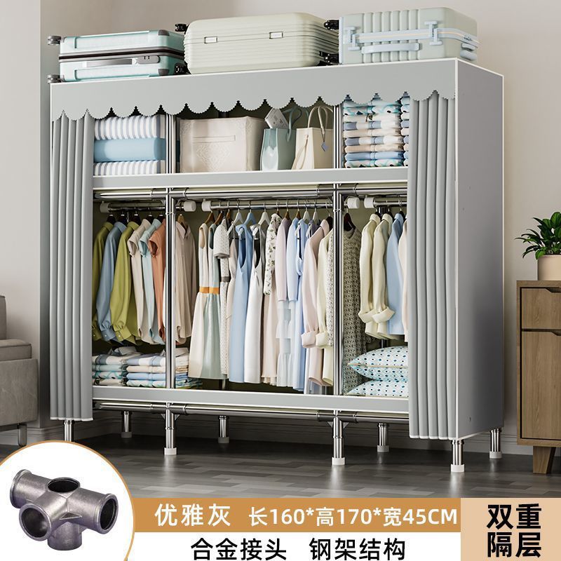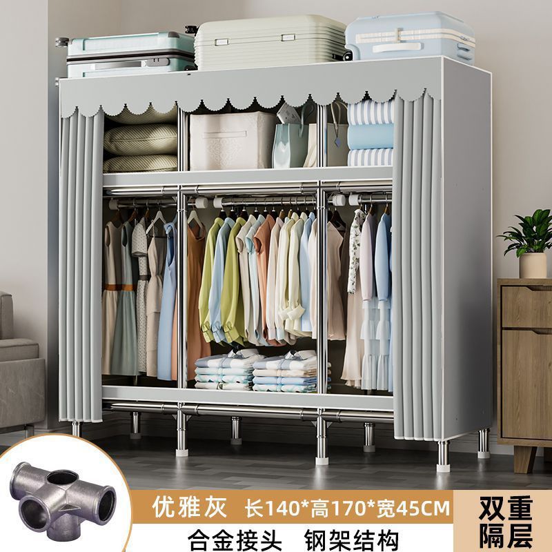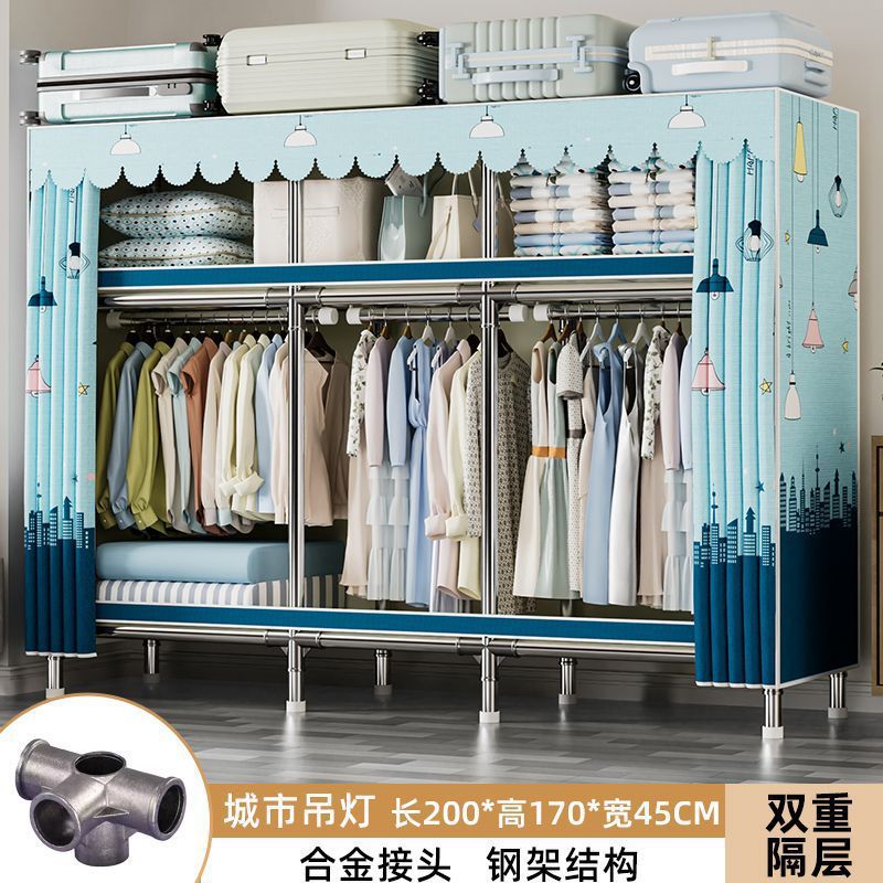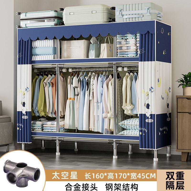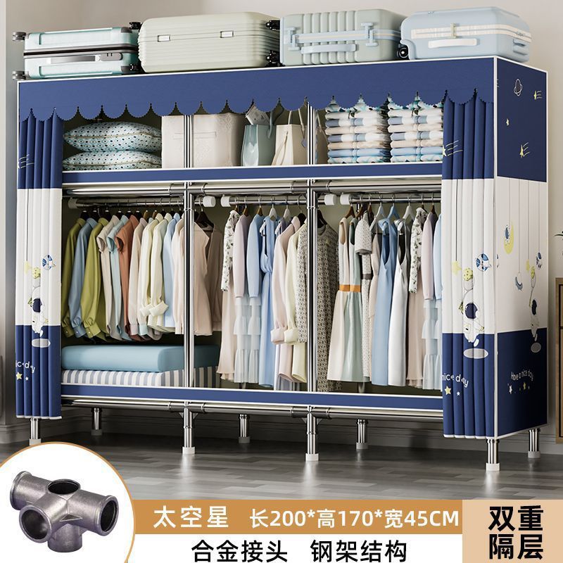 가정용 침실용 간이 옷장 두꺼운 강철 파이프 옷장 임대실 천 옷장 금속 기타