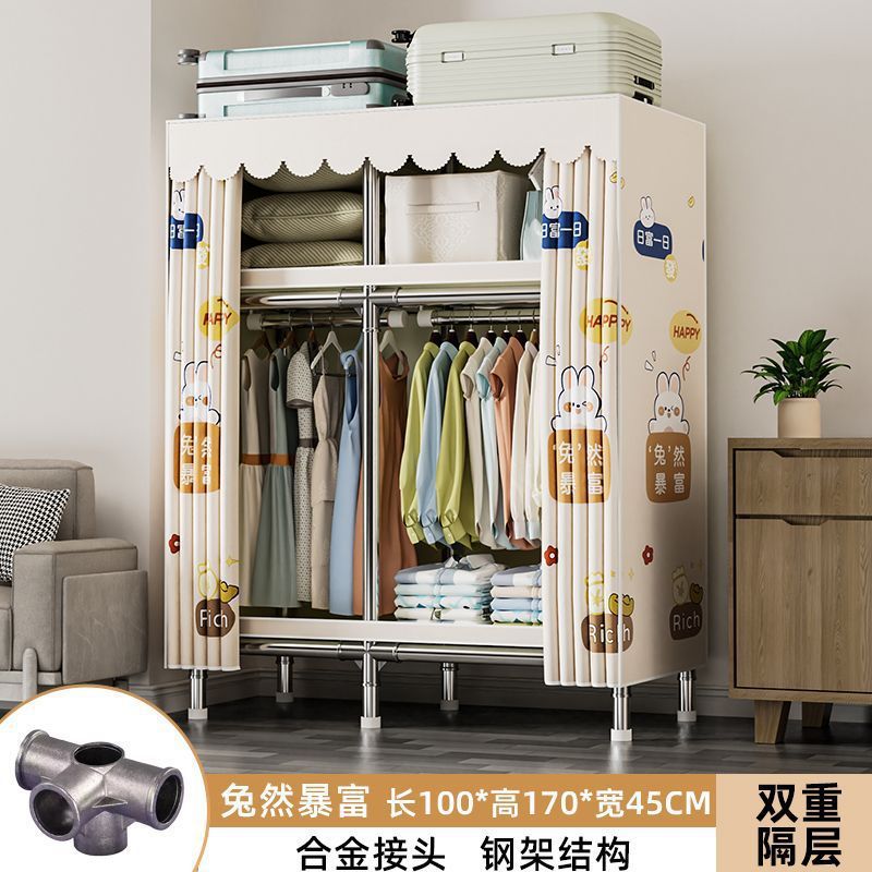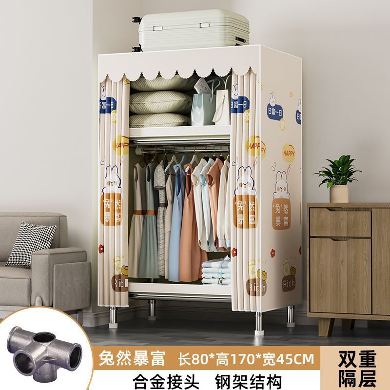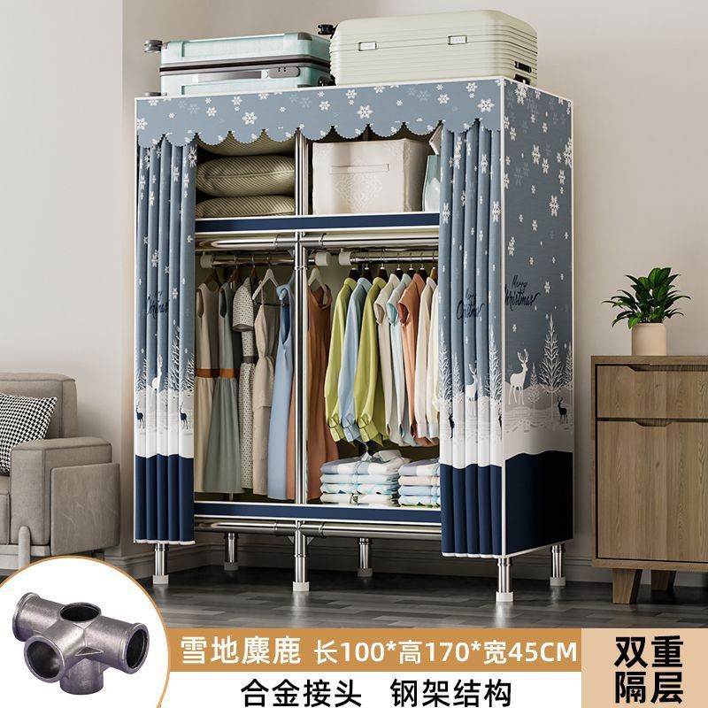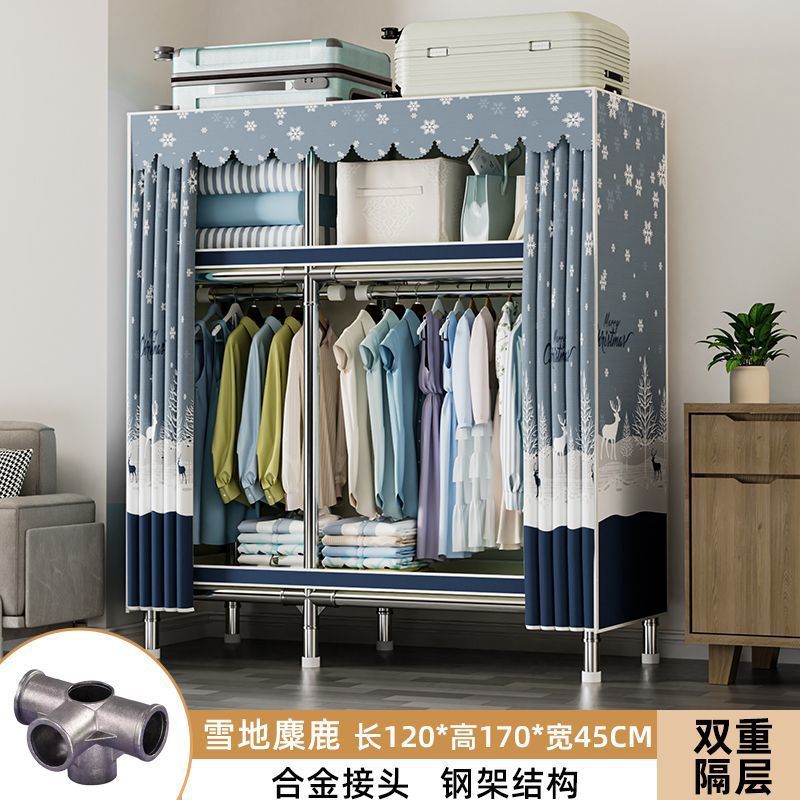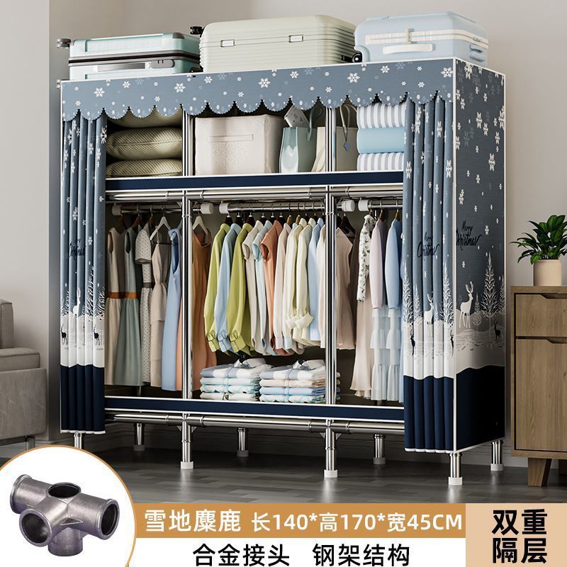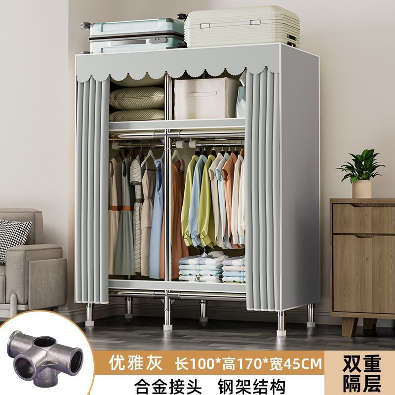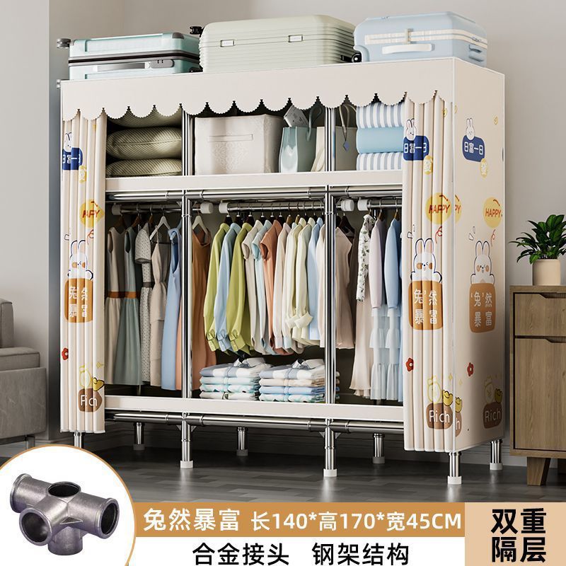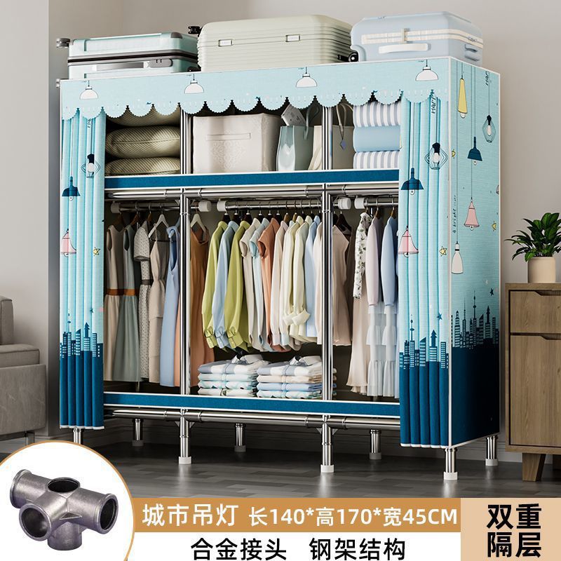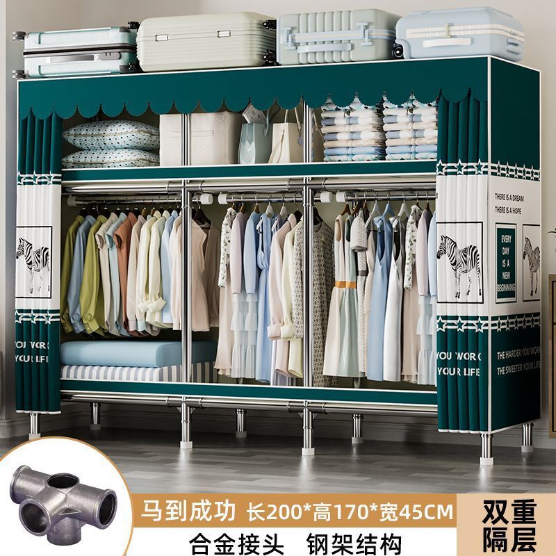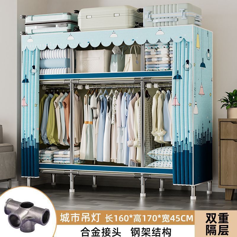 가정용 침실용 간이 옷장 두꺼운 강철 파이프 옷장 임대실 천 옷장 금속 기타