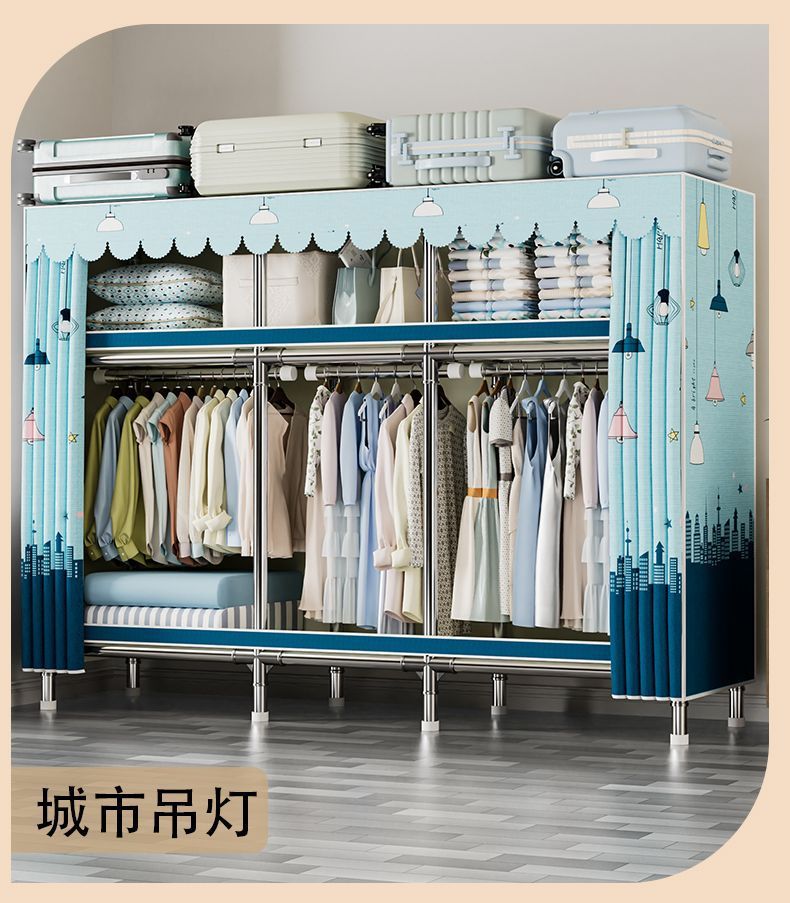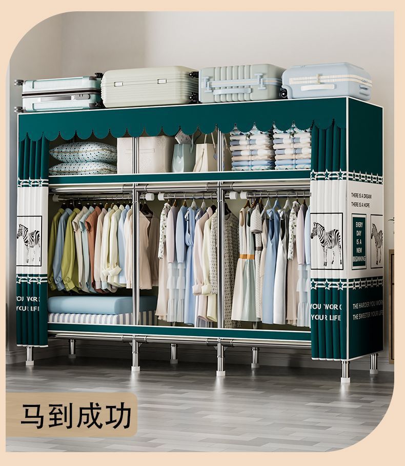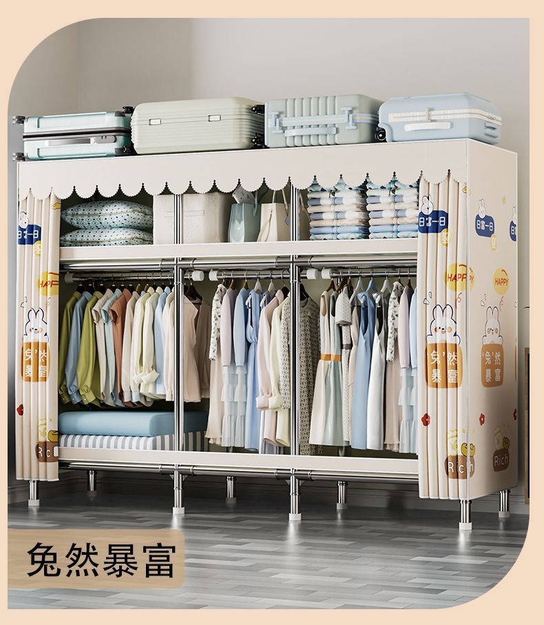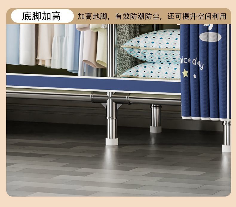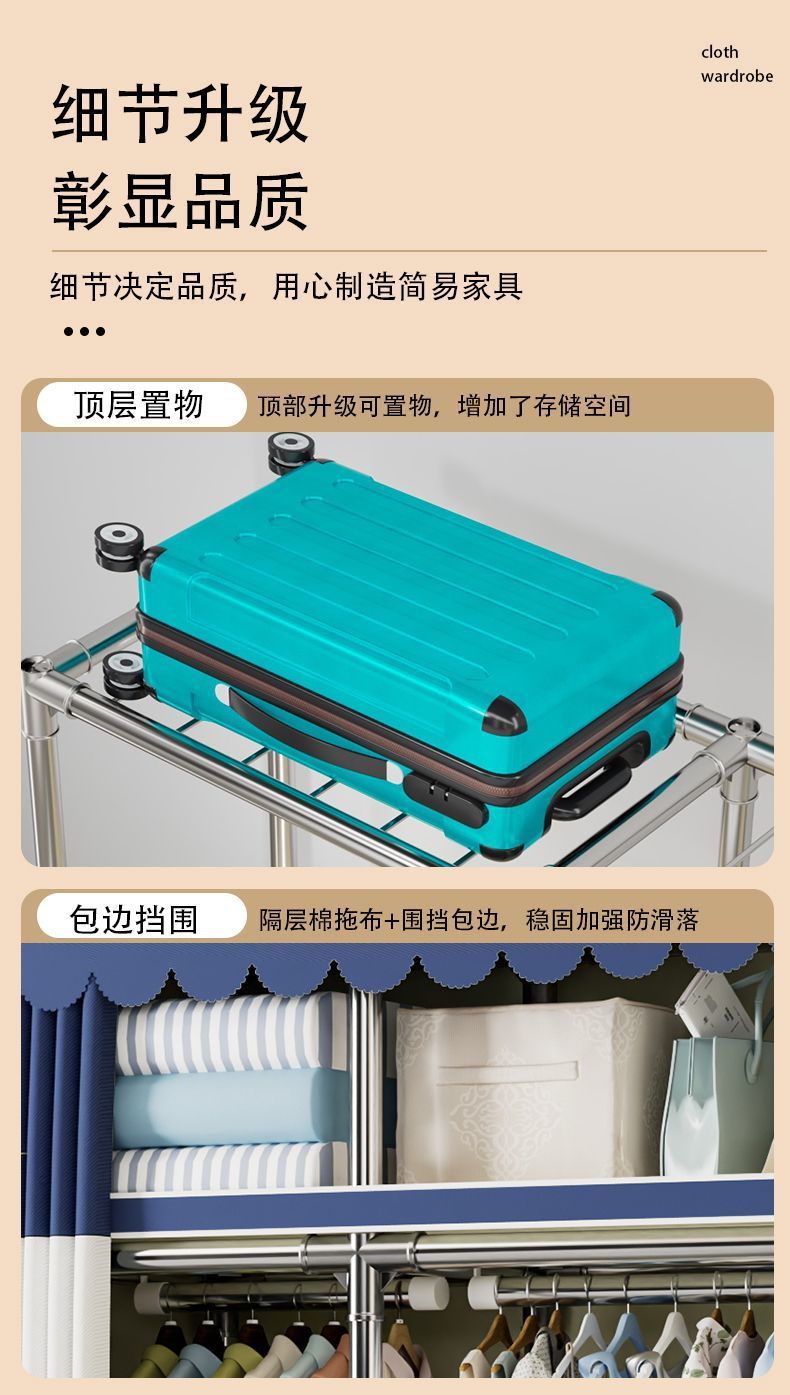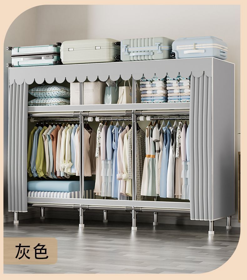 가정용 침실용 간이 옷장 두꺼운 강철 파이프 옷장 임대실 천 옷장 금속 기타스토어 가기