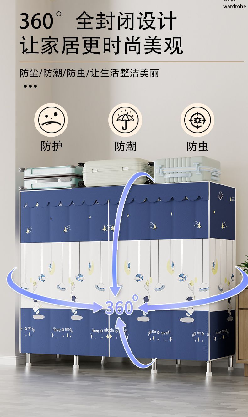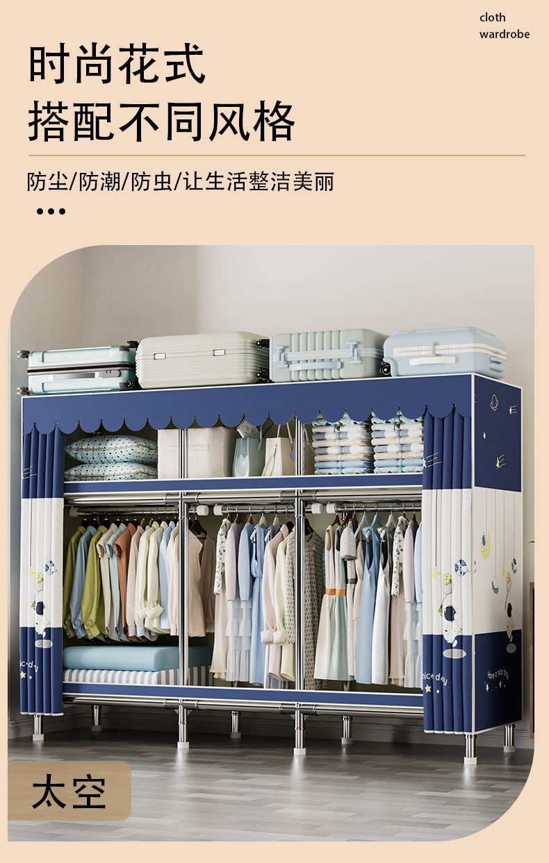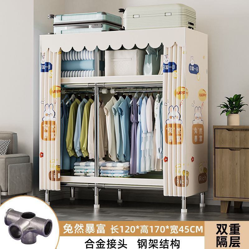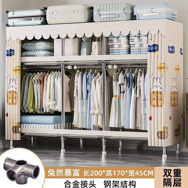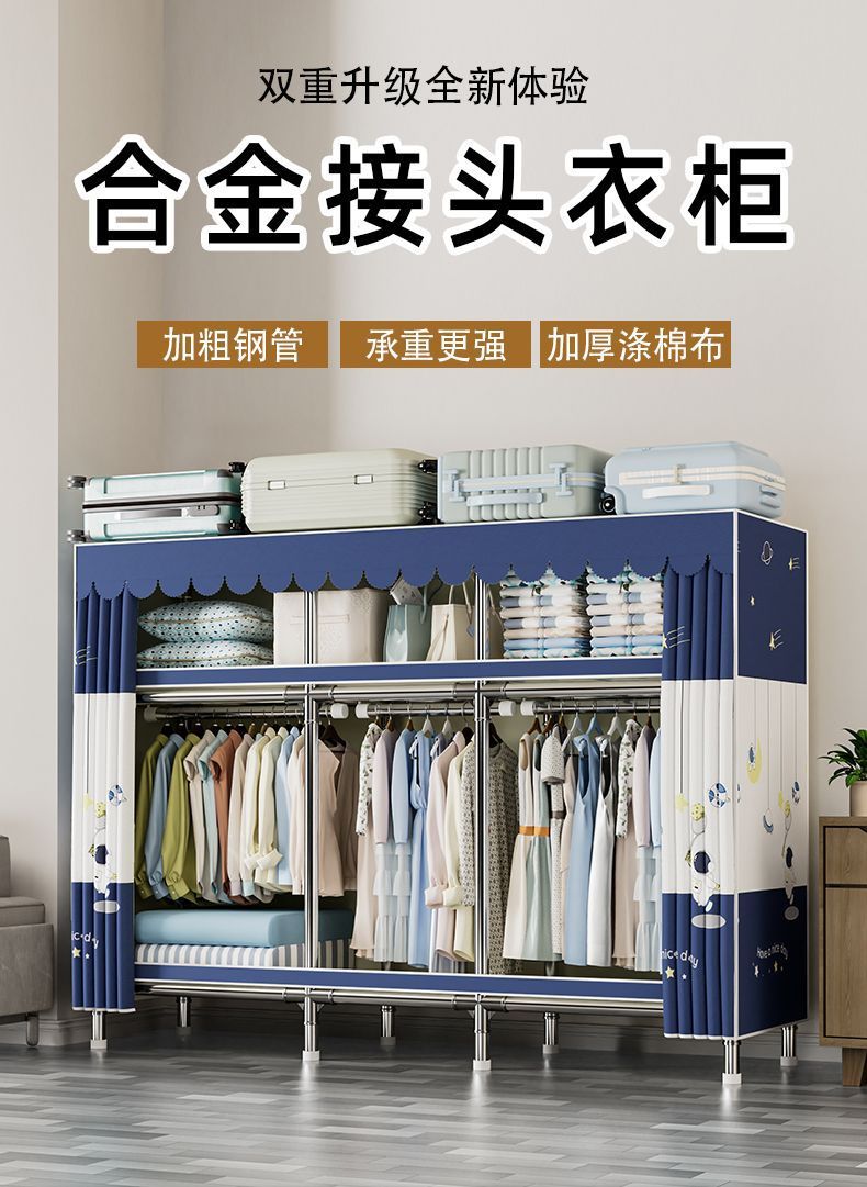 가정용 침실용 간이 옷장 두꺼운 강철 파이프 옷장 임대실 천 옷장 금속 기타스토어 가기
