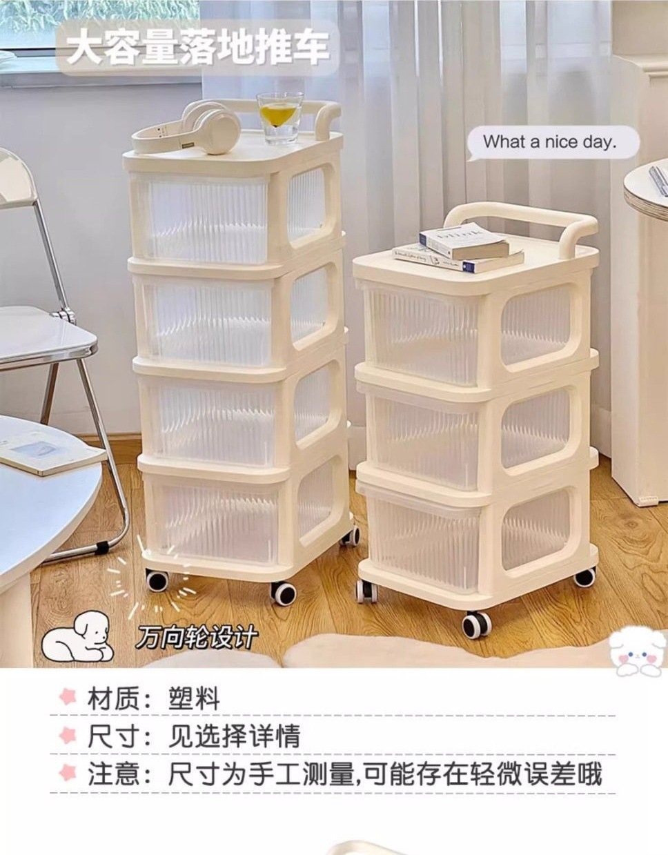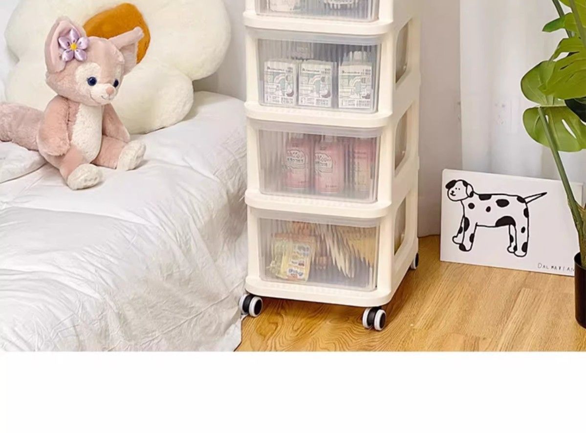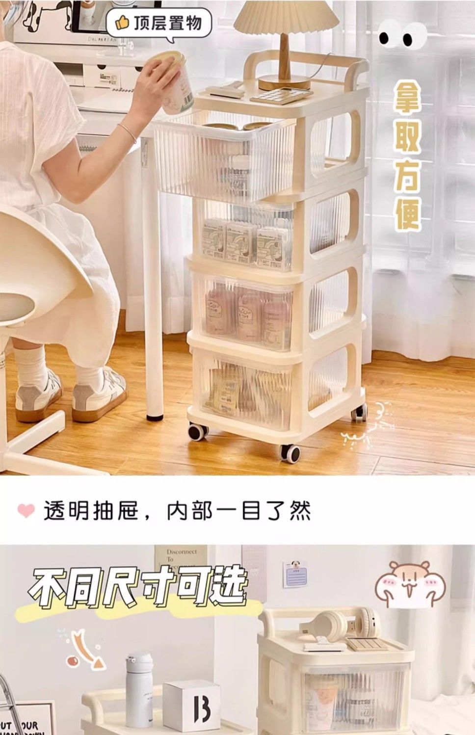 가정용 거실 및 기숙사 스낵 보관 랙을 위한 다기능 트롤리 보관 랙 바닥에서 이동식 방진 보관 캐비닛스토어 가기