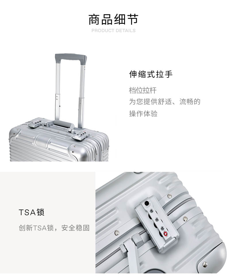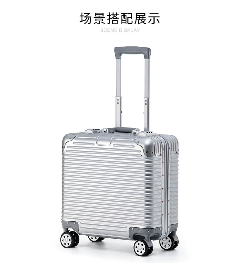 제조업체 알루미늄 마그네슘 합금 18inch 남성용 탑승 가방 무료 배송 범용 휠 트롤리 비밀번호 가방이있는 작은 가방스토어 가기