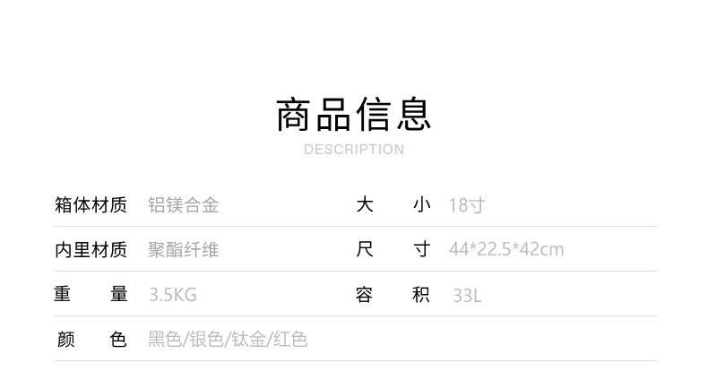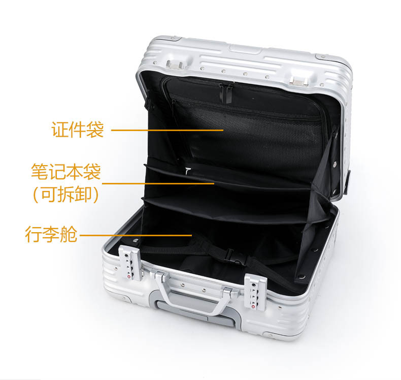 제조업체 알루미늄 마그네슘 합금 18inch 남성용 탑승 가방 무료 배송 범용 휠 트롤리 비밀번호 가방이있는 작은 가방