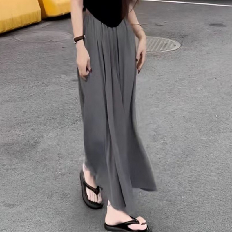 새로운 드레이프 롱 스커트, 발목 스커트, 캐주얼 하이웨이스트 슬리밍 슈트 스커트, 무릎 위 롱 여성 스커트, 여름스토어 가기