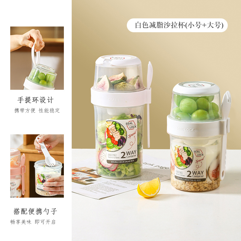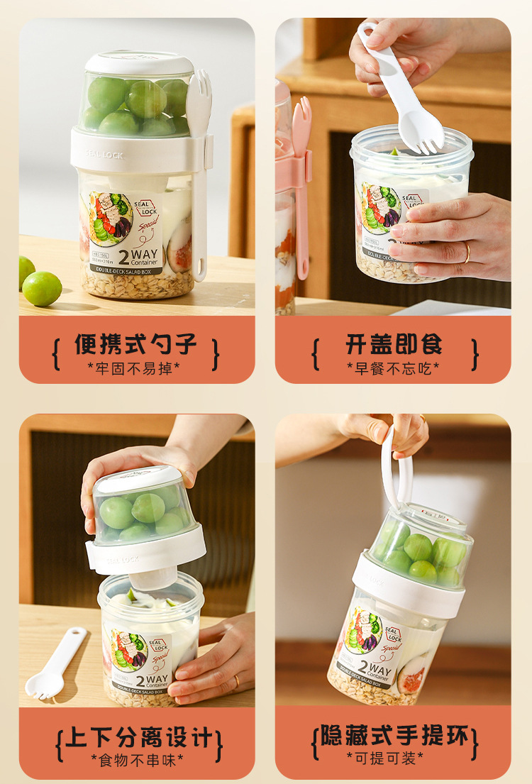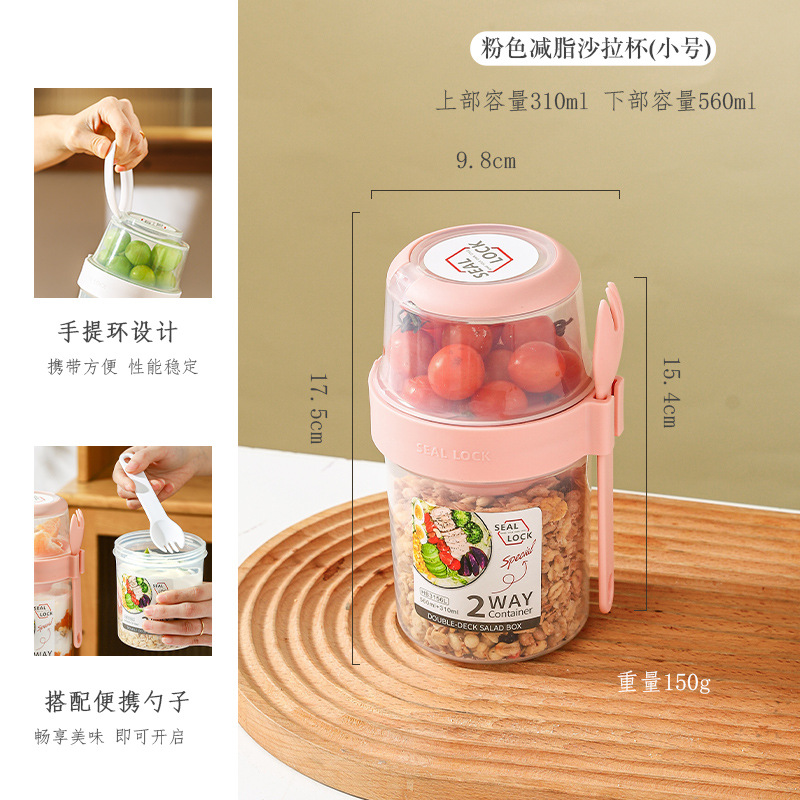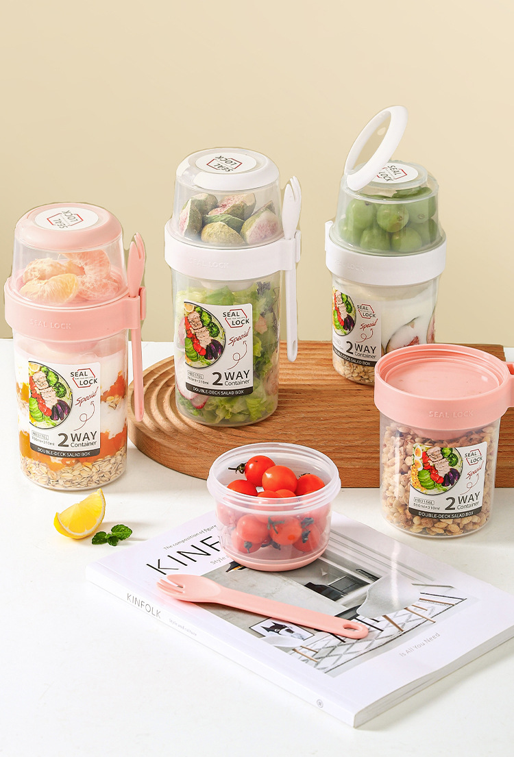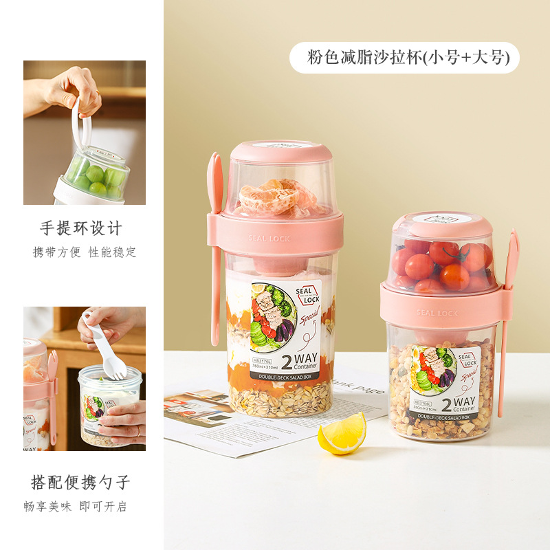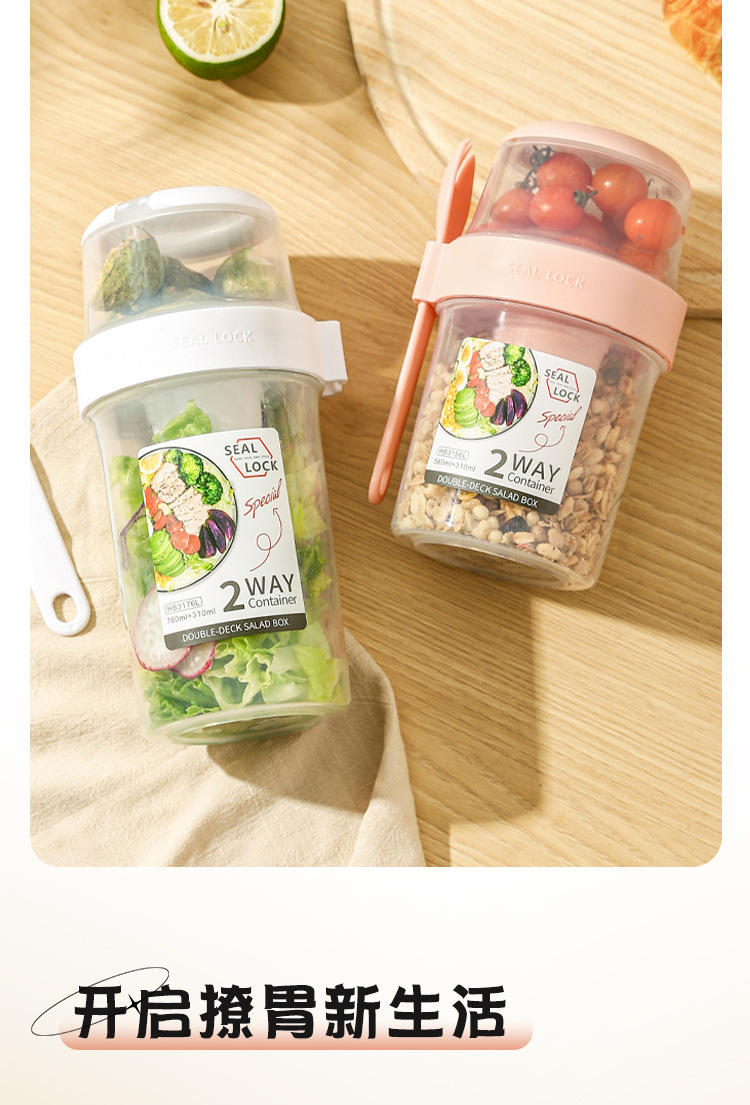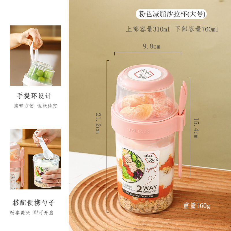 MTOY 휴대용 야채 샐러드 컵 테이크아웃 과일 요구르트 밀크 쉐이크 뚜껑이 있는 아침 식사 컵 스푼 오버나이트 오트밀 컵스토어 가기