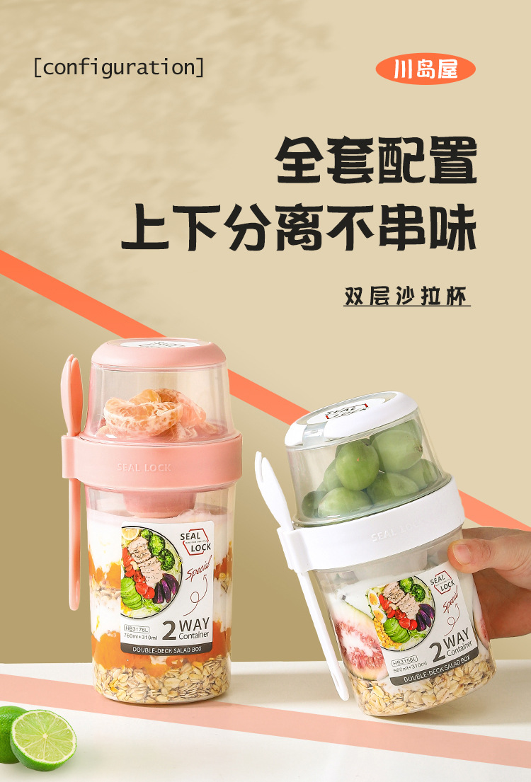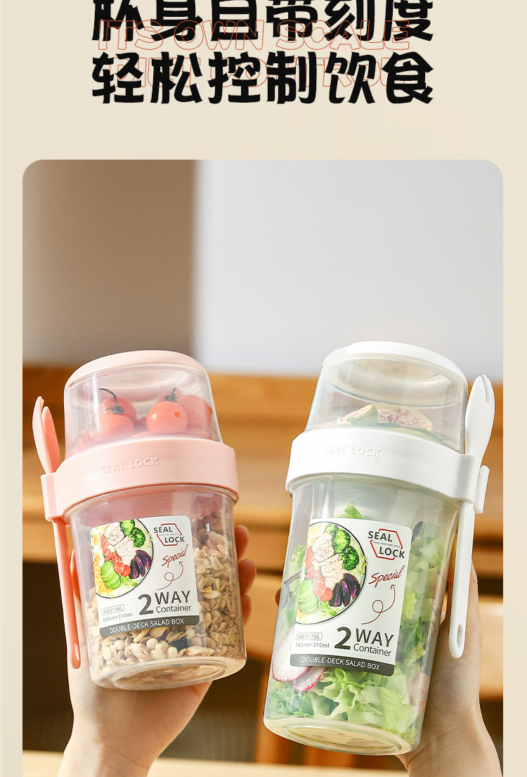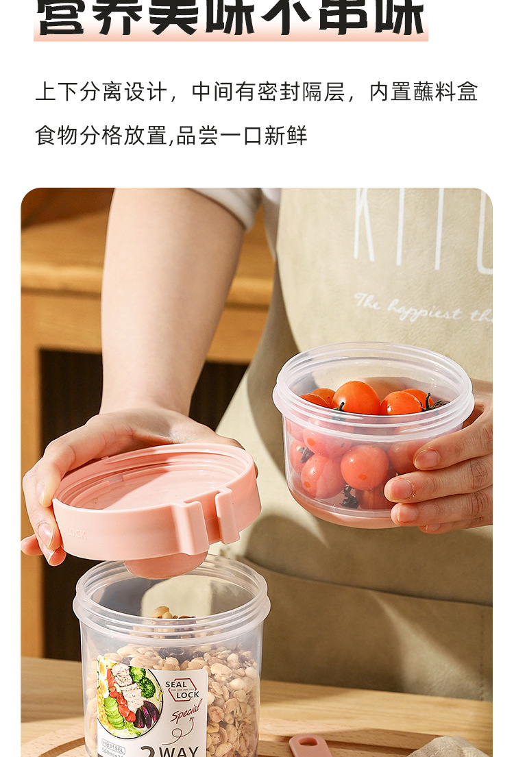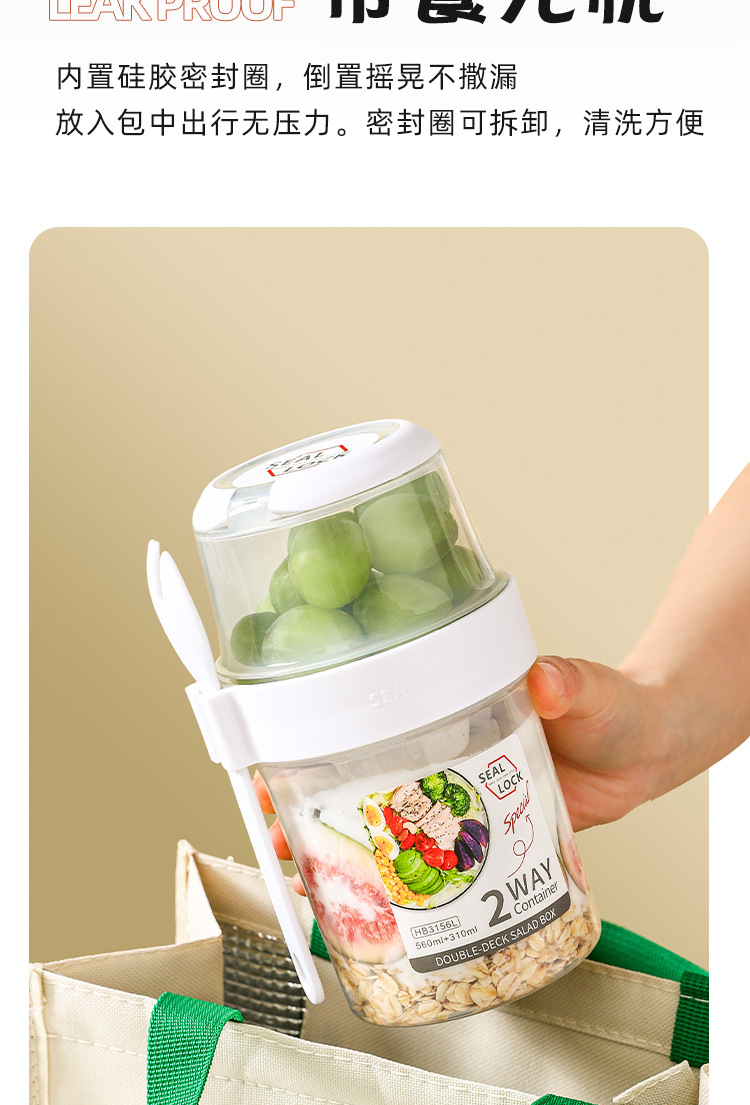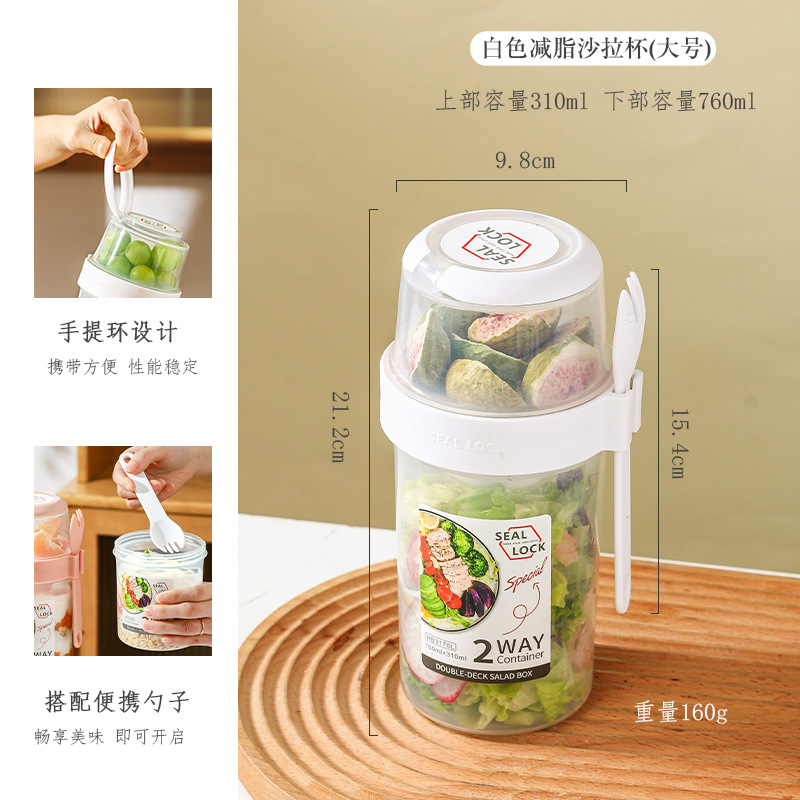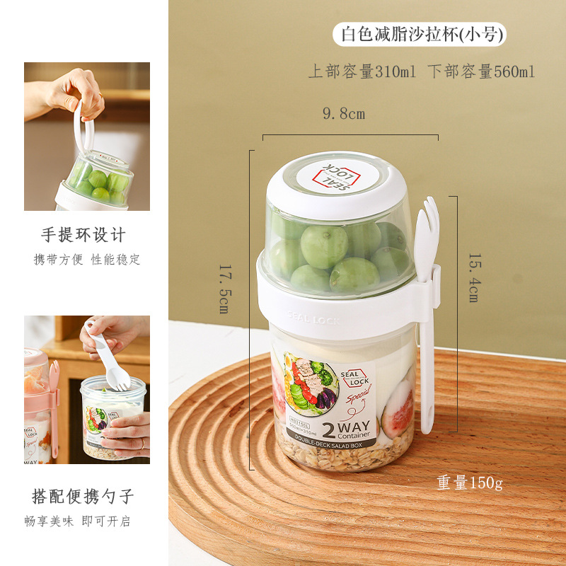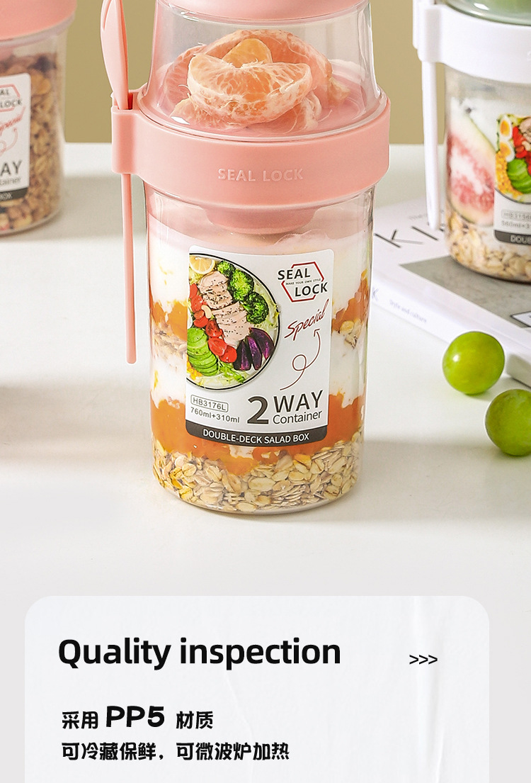 MTOY 휴대용 야채 샐러드 컵 테이크아웃 과일 요구르트 밀크 쉐이크 뚜껑이 있는 아침 식사 컵 스푼 오버나이트 오트밀 컵스토어 가기
