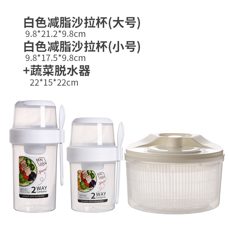 • 흰색 지방 감소 샐러드 컵(소형 + 대형) + 야채 탈수기