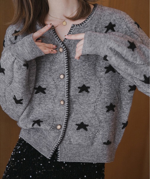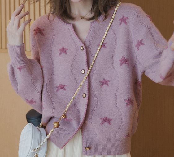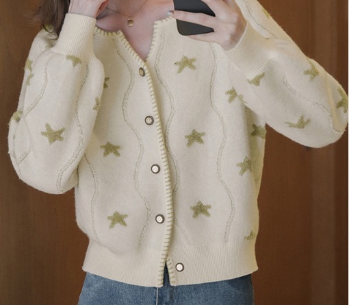 여성용 울 스웨터 2025 봄, 가을 한국 스타일 퍼프 슬리브 루즈 슬림 카디건 버튼 짧은 긴팔 탑스토어 가기