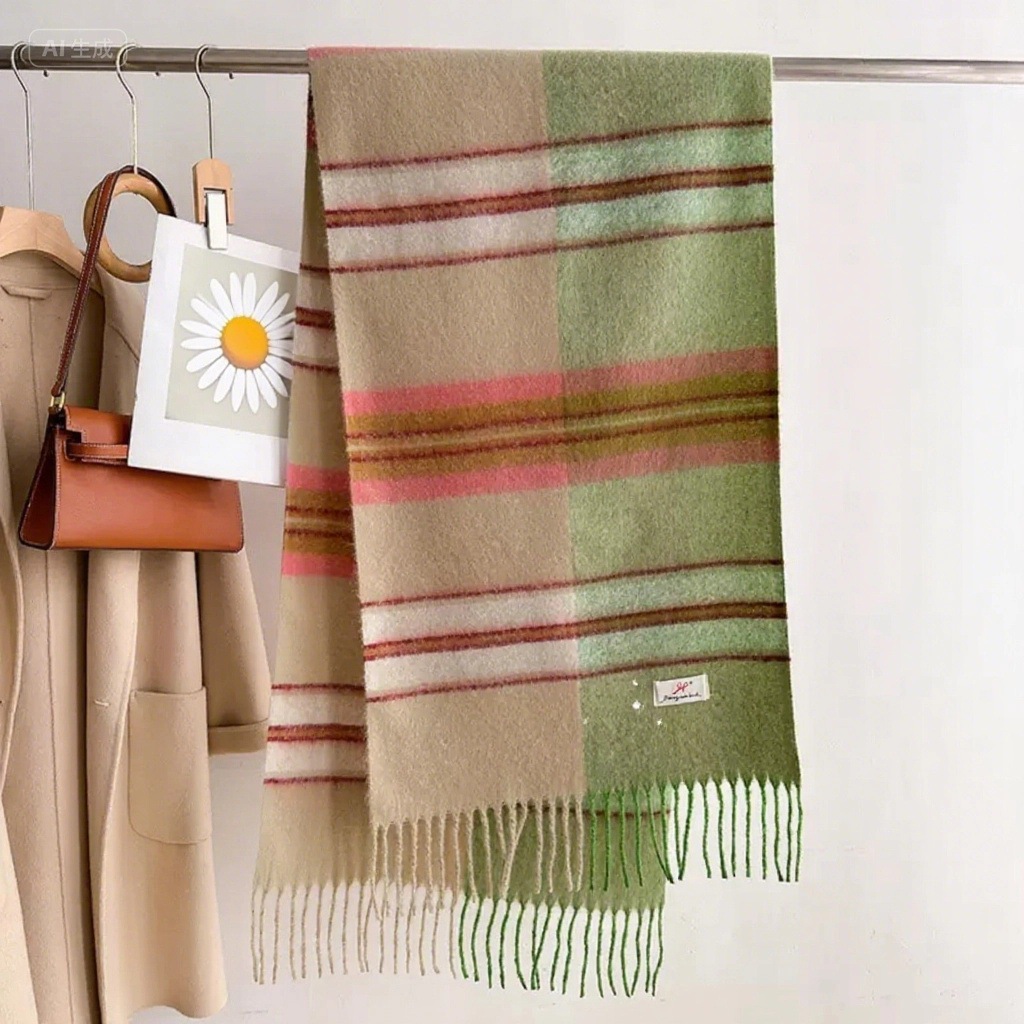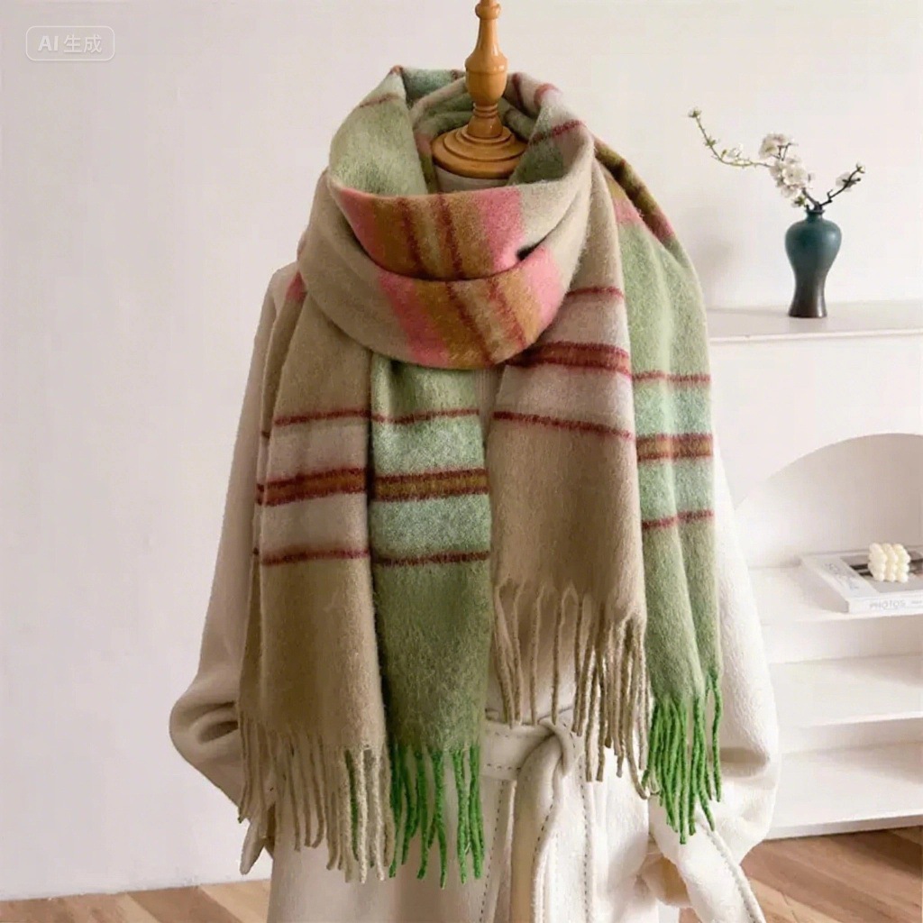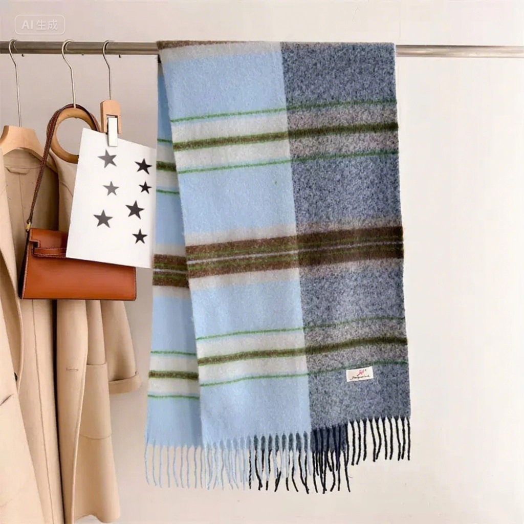 색상 차단 줄무늬 그라데이션 스카프 따뜻한 두꺼운 목도리 모조 캐시미어 남성과 여성 통근 가을, 겨울 다용도 스카프 술스토어 가기