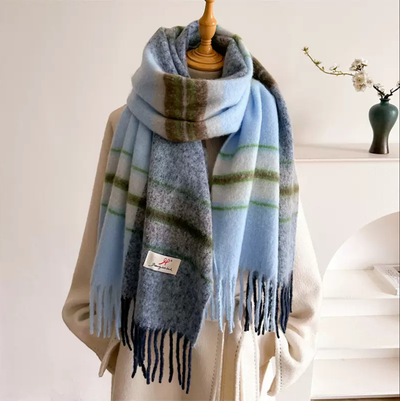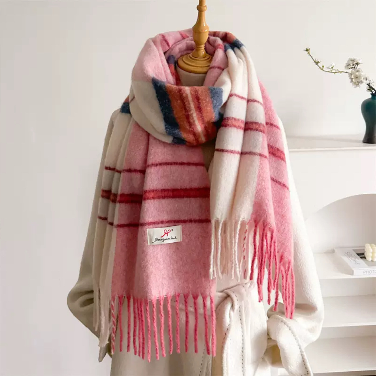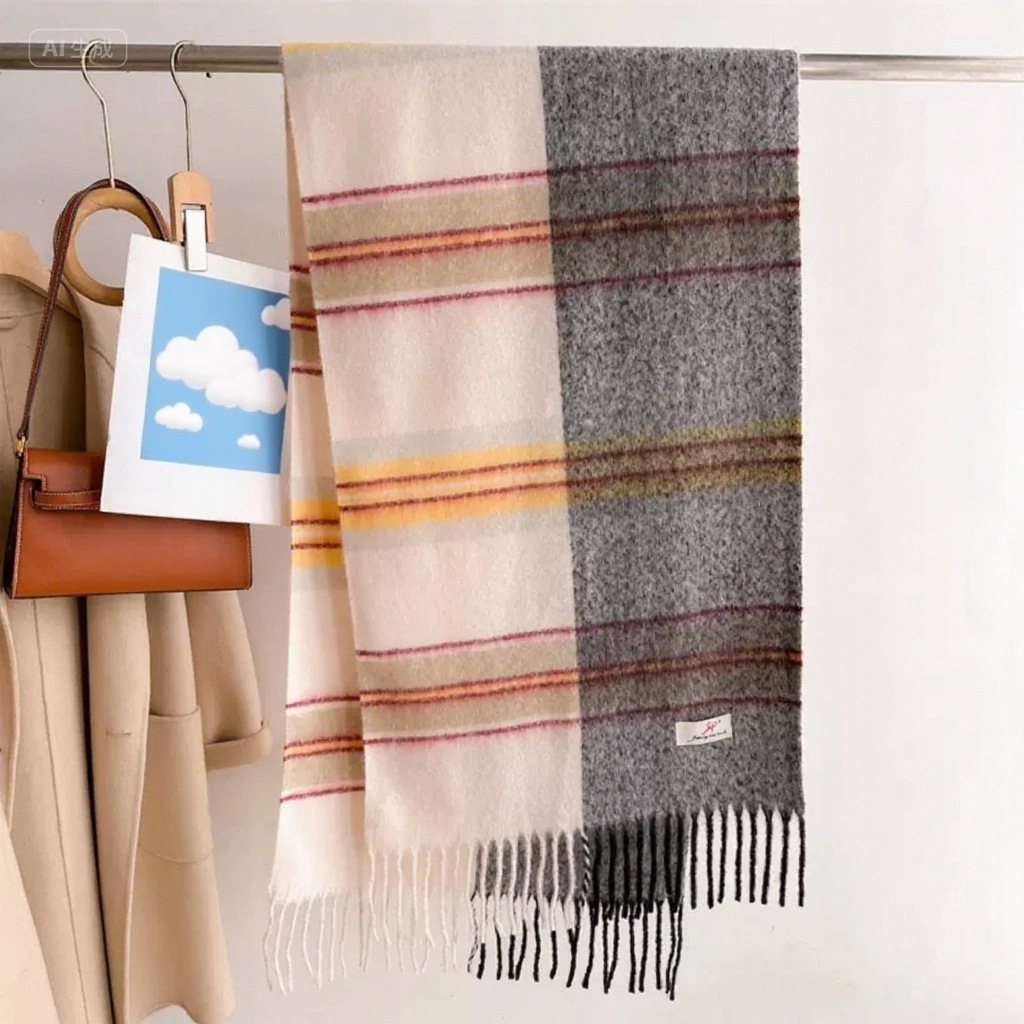 색상 차단 줄무늬 그라데이션 스카프 따뜻한 두꺼운 목도리 모조 캐시미어 남성과 여성 통근 가을, 겨울 다용도 스카프 술스토어 가기