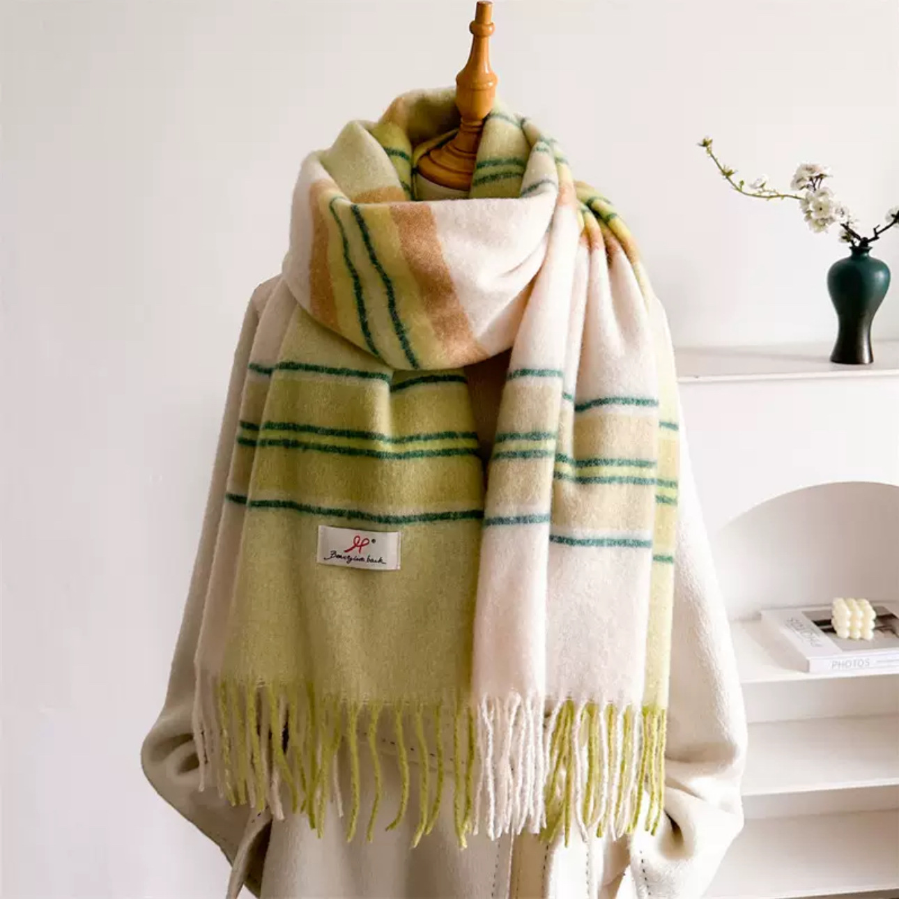 색상 차단 줄무늬 그라데이션 스카프 따뜻한 두꺼운 목도리 모조 캐시미어 남성과 여성 통근 가을, 겨울 다용도 스카프 술