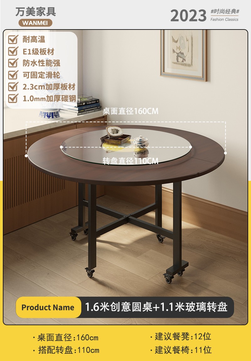 • εααααε 1.6m 블랙 월넛 접이식 대형 원형 테이블 + 1.1 유리 턴테이블 εααααε✓