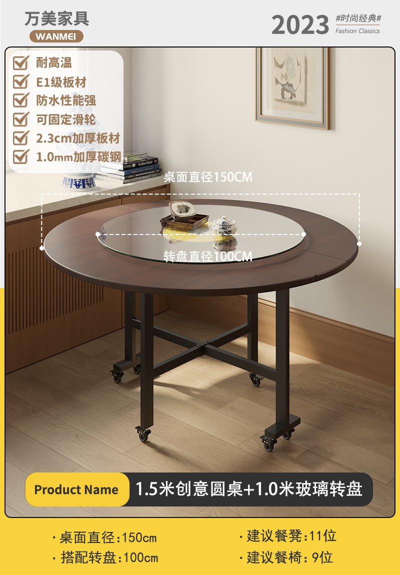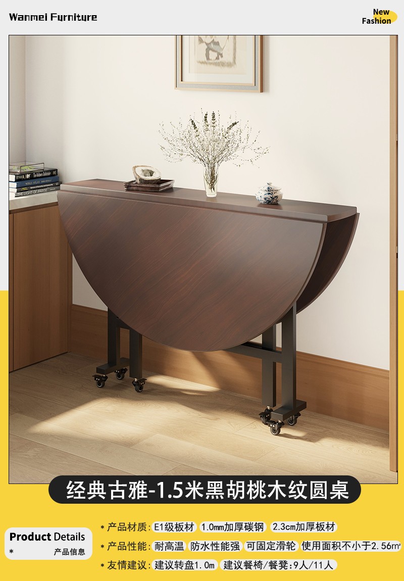 • εααααε「」 1.5m 블랙 월넛 접이식 대형 원형 테이블〃클래식하고 다재다능하며 9-11명이 앉을 수 있습니다εααααε✓