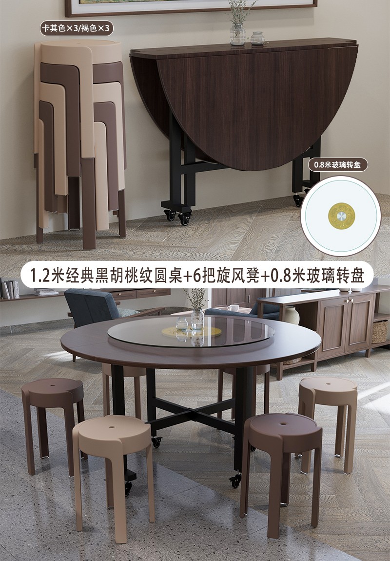 • εααααε1.2 블랙 호두나무 접이식 대형 원형 테이블 + 0.8 유리 턴테이블 + 풍차 스툴 6개 ✓ ✓ ✓ ✓ εααααε✓