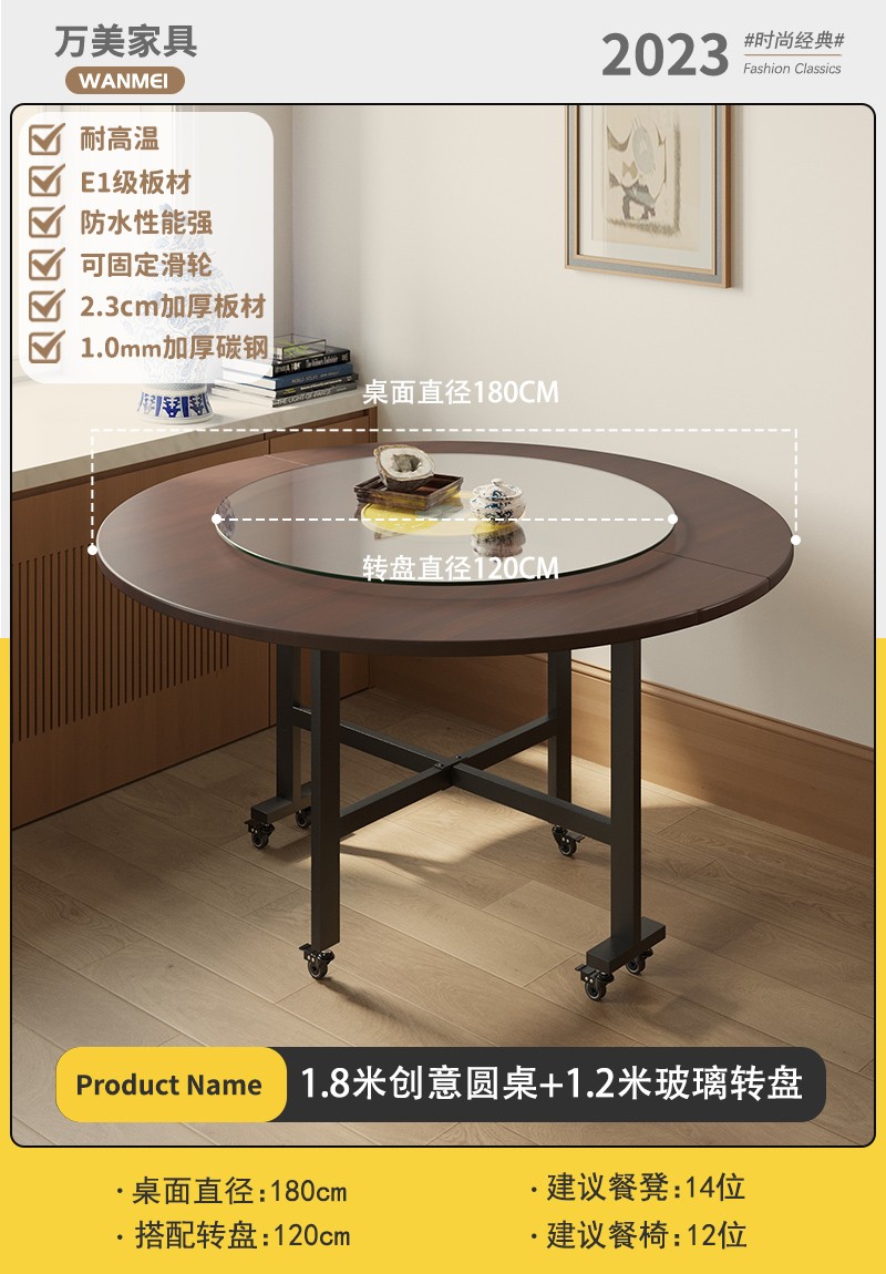 • εααααε 1.8m 블랙 월넛 접이식 대형 원형 테이블 + 1.2 유리 턴테이블 εααααε✓