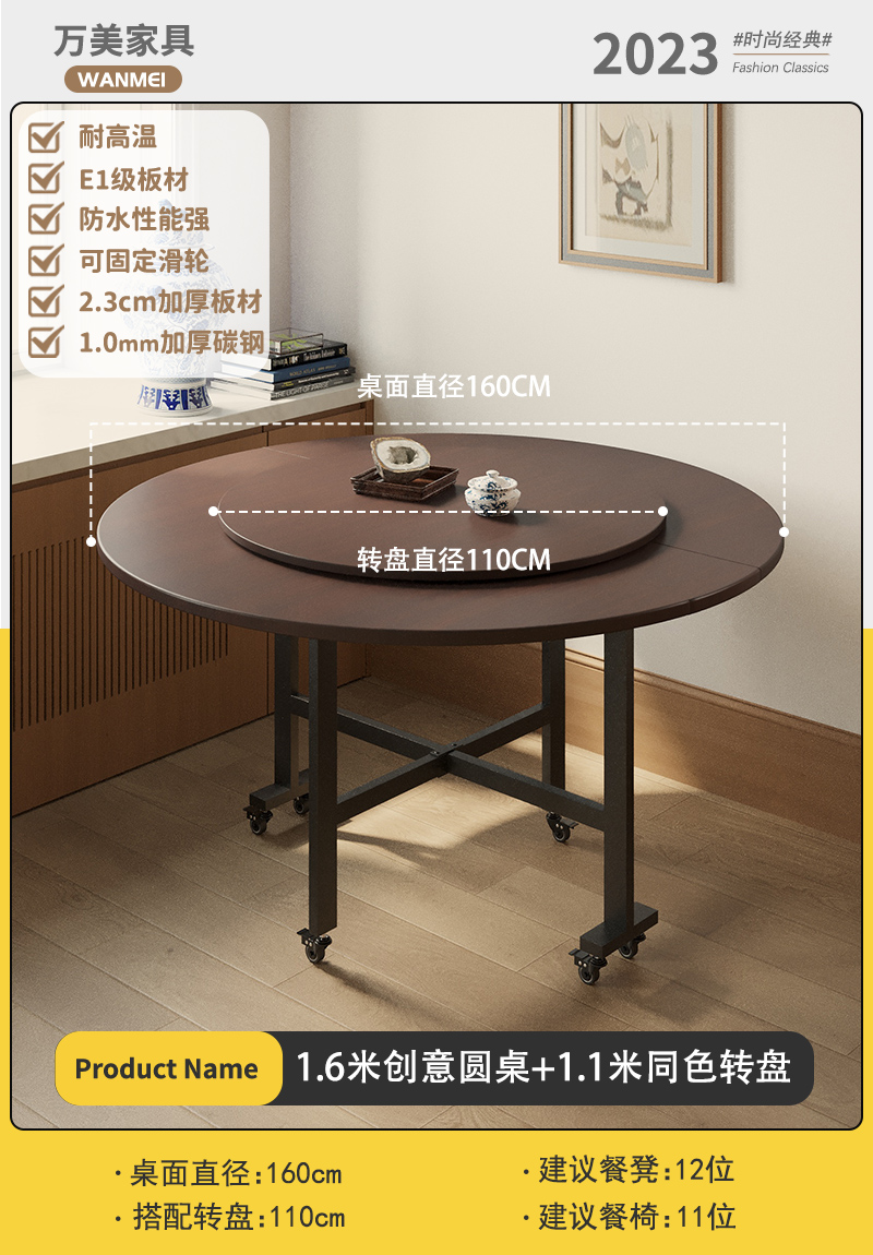 • εααααε 1.6m 블랙 월넛 접이식 대형 원형 테이블 + 1.1CM 동색 턴테이블 εααααε✓
