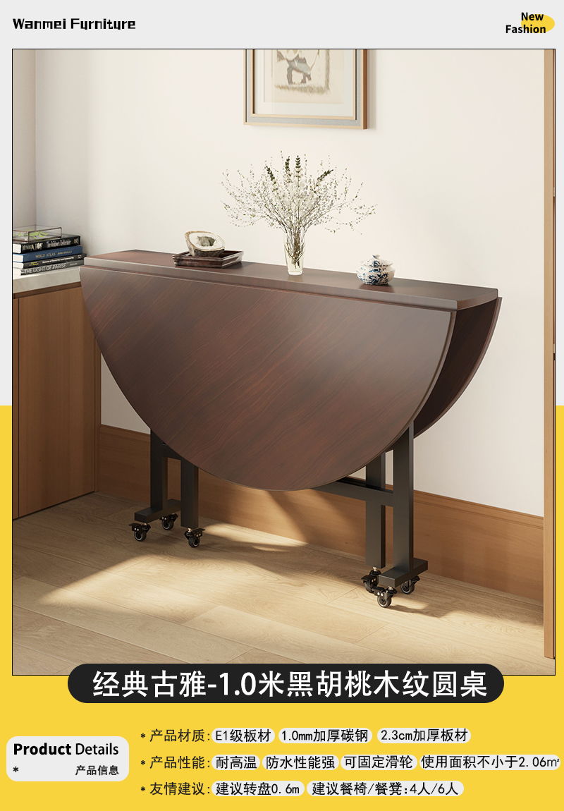 • εααααε「」 1.0m 블랙 월넛 접이식 대형 원형 테이블〃클래식하고 다재다능하며 4-6명이 앉을 수 있습니다.εααααε✓