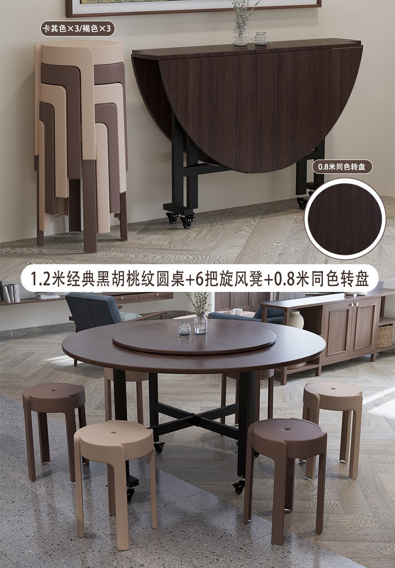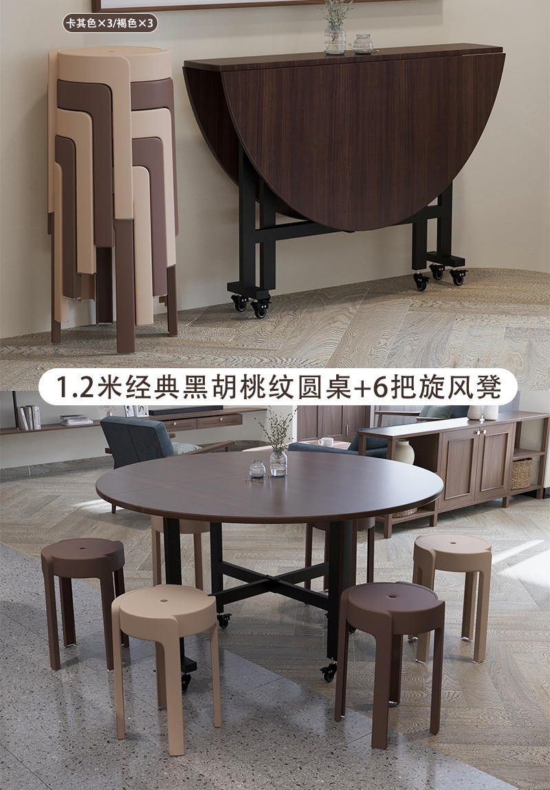 • εααααε1.2 블랙 호두나무 접이식 대형 원형 테이블 + 풍차 스툴 6개 ✓ ✓ ✓ ✓ ✓ 별 매칭--εααααε ✓ 절약