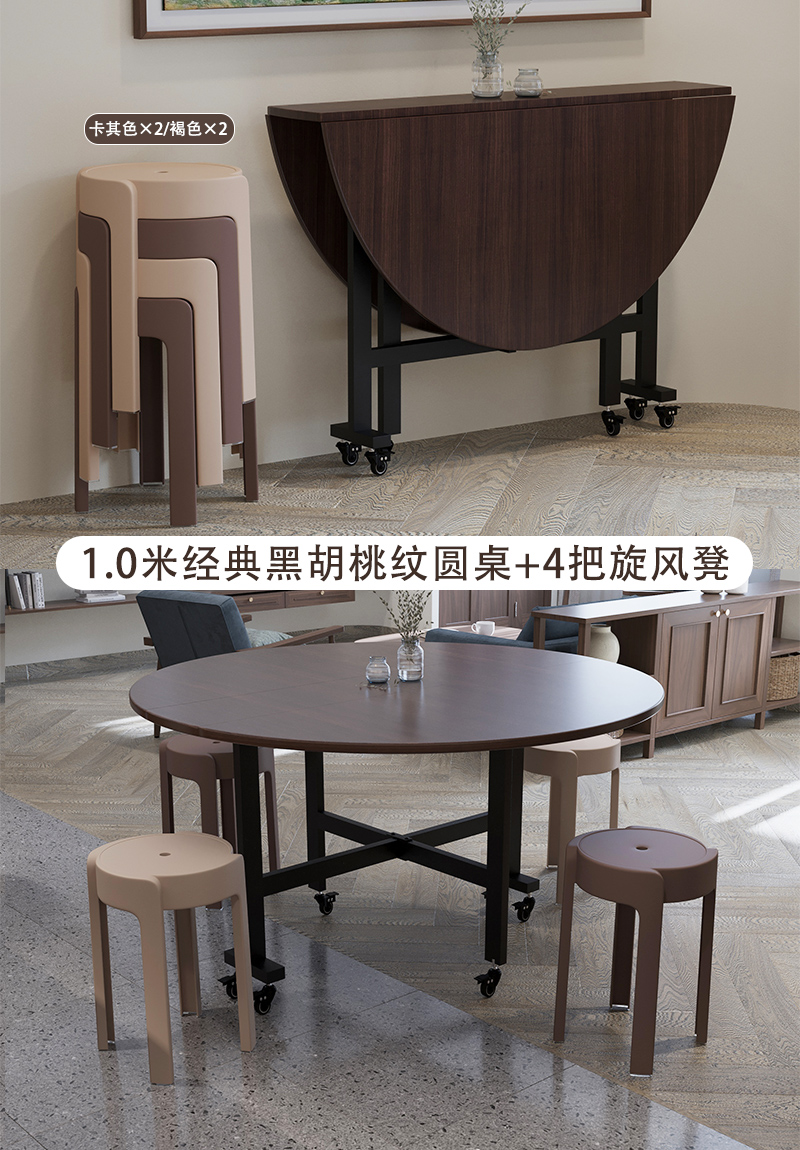 • εααααε1.0 블랙 호두나무 접이식 대형 원형 테이블 + 풍차 스툴 4개 ✓ ✓ ✓ ✓ ✓ 별 매칭--εααααε 절약 ✓