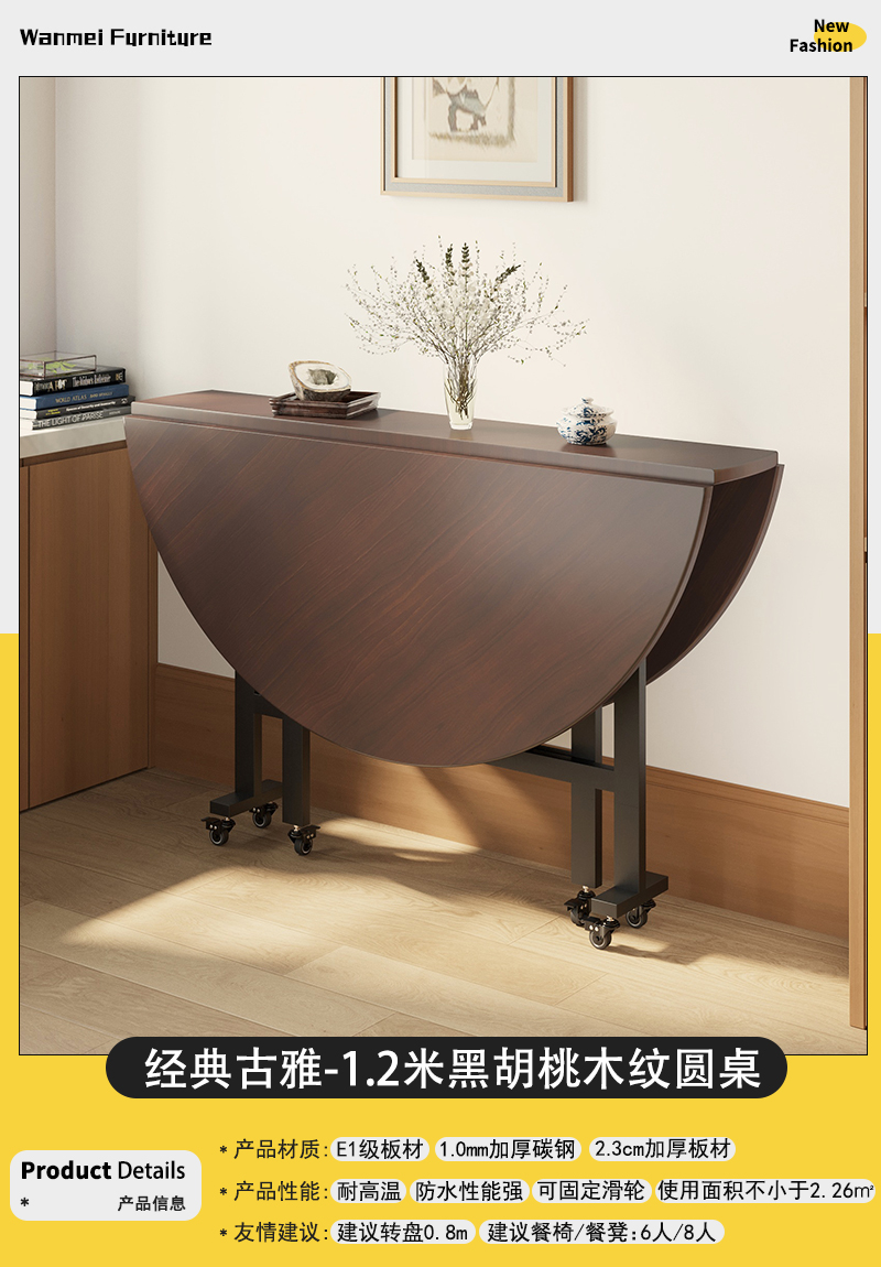 • εααααε「」 1.2m 블랙 월넛 접이식 대형 원형 테이블〃클래식하고 다재다능하며 6-8명이 앉을 수 있습니다.εααααε✓
