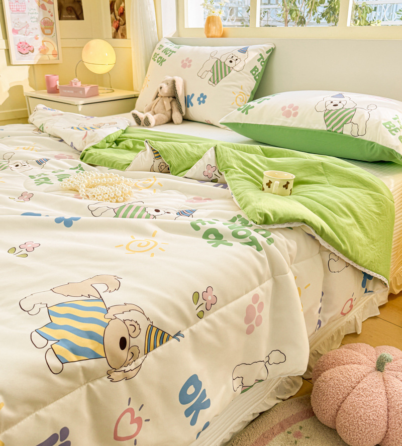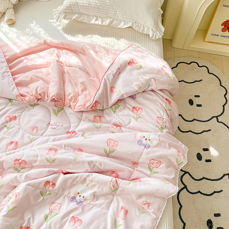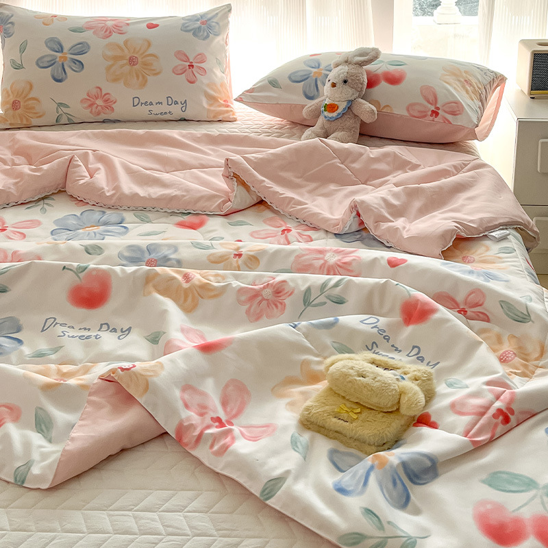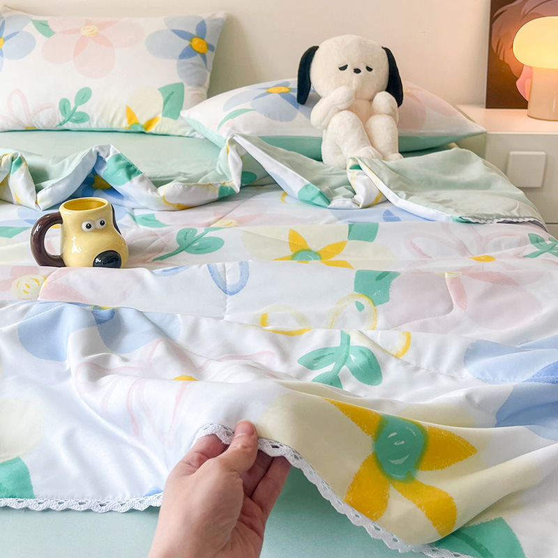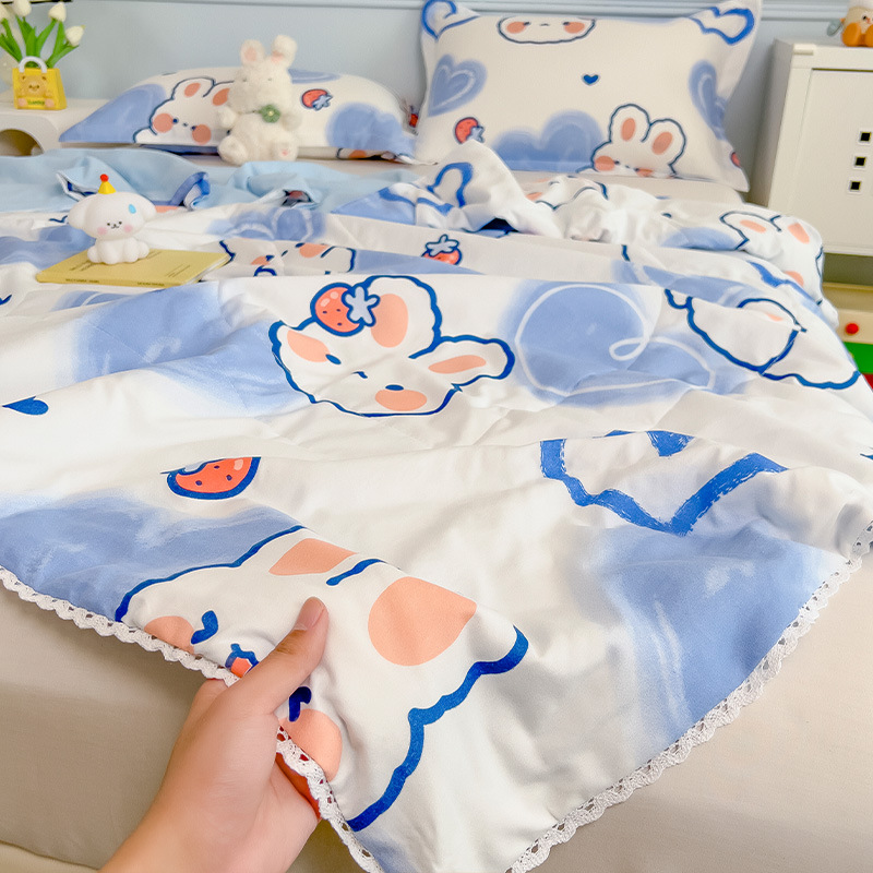 클래스 A 여름 이불 워시 코튼 여름 시원한 이불 에어컨 이불 기숙사 싱글 어린이 얇은 봄, 가을 이불 코어 기계 세탁 가능 여름