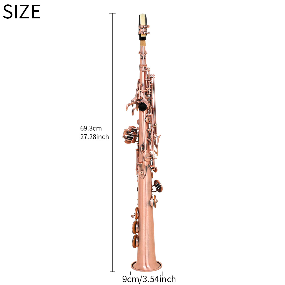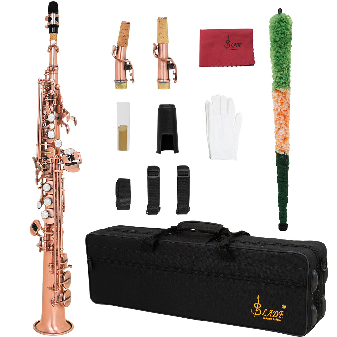 产品名称:SLADE雷德高音萨克斯直管降B调红铜管体雕花白贝壳按键红仿古色(SLADE布盒款+标配)