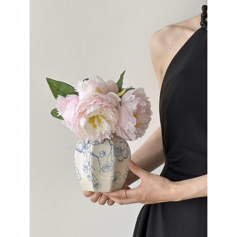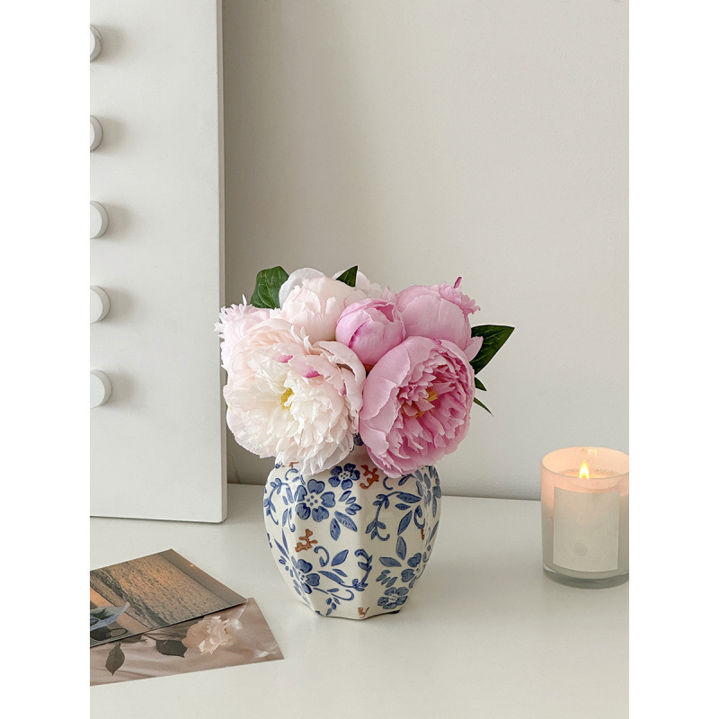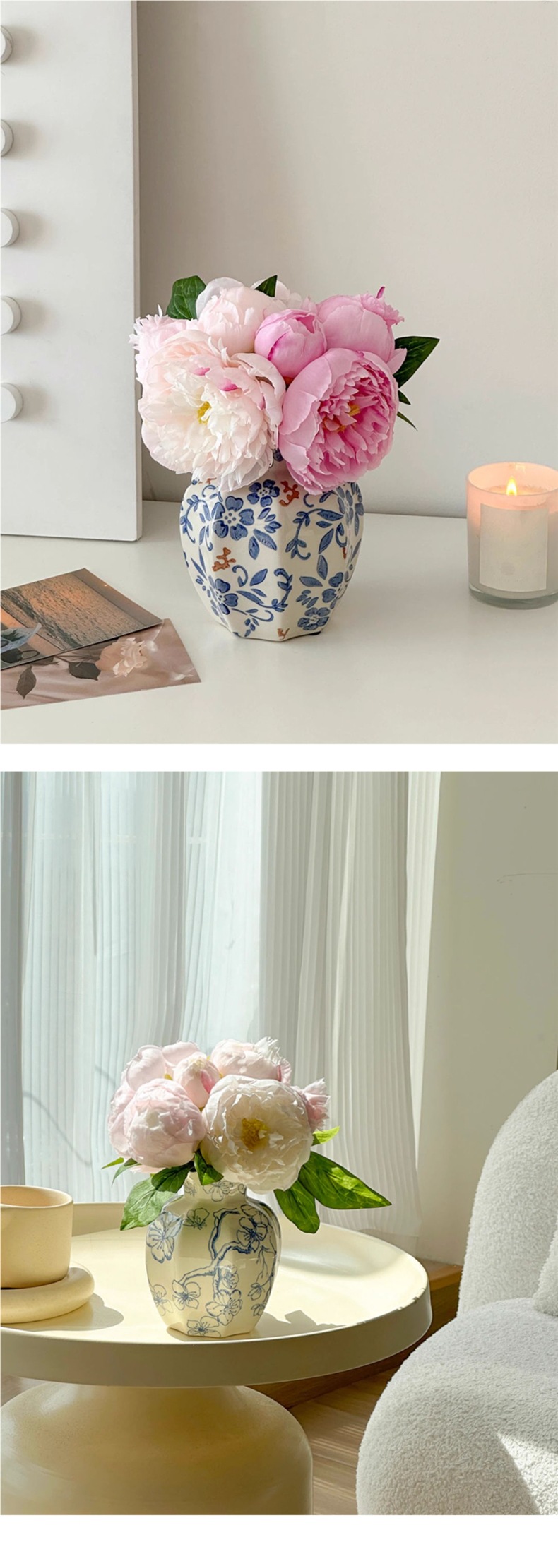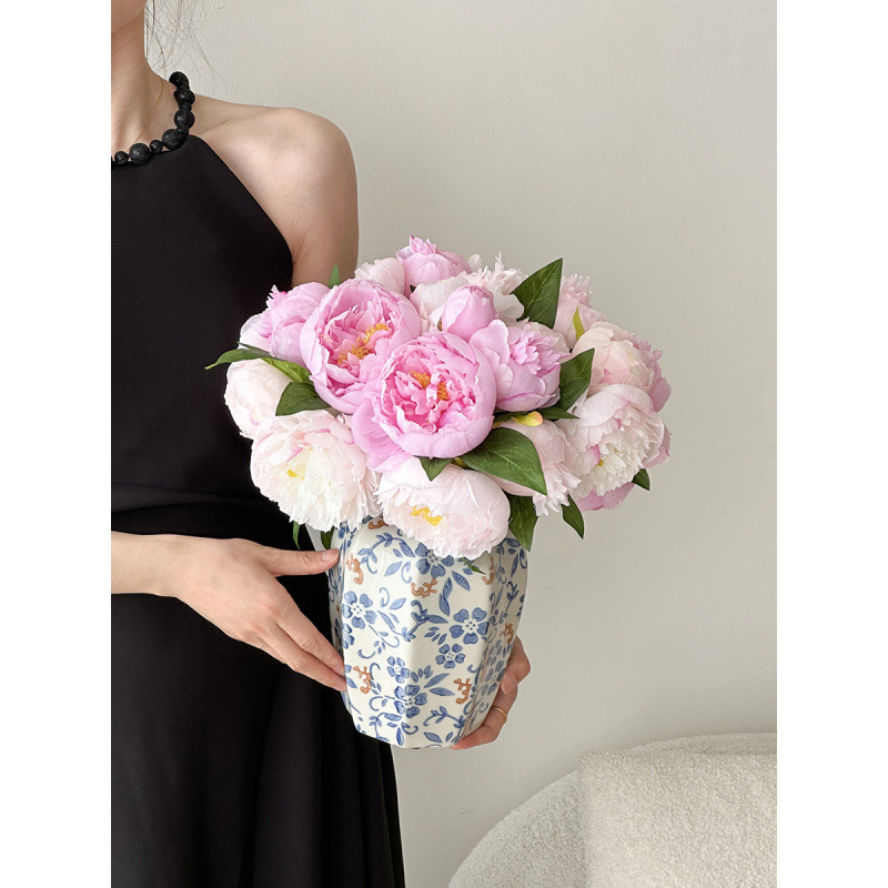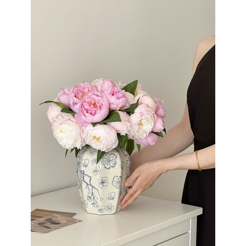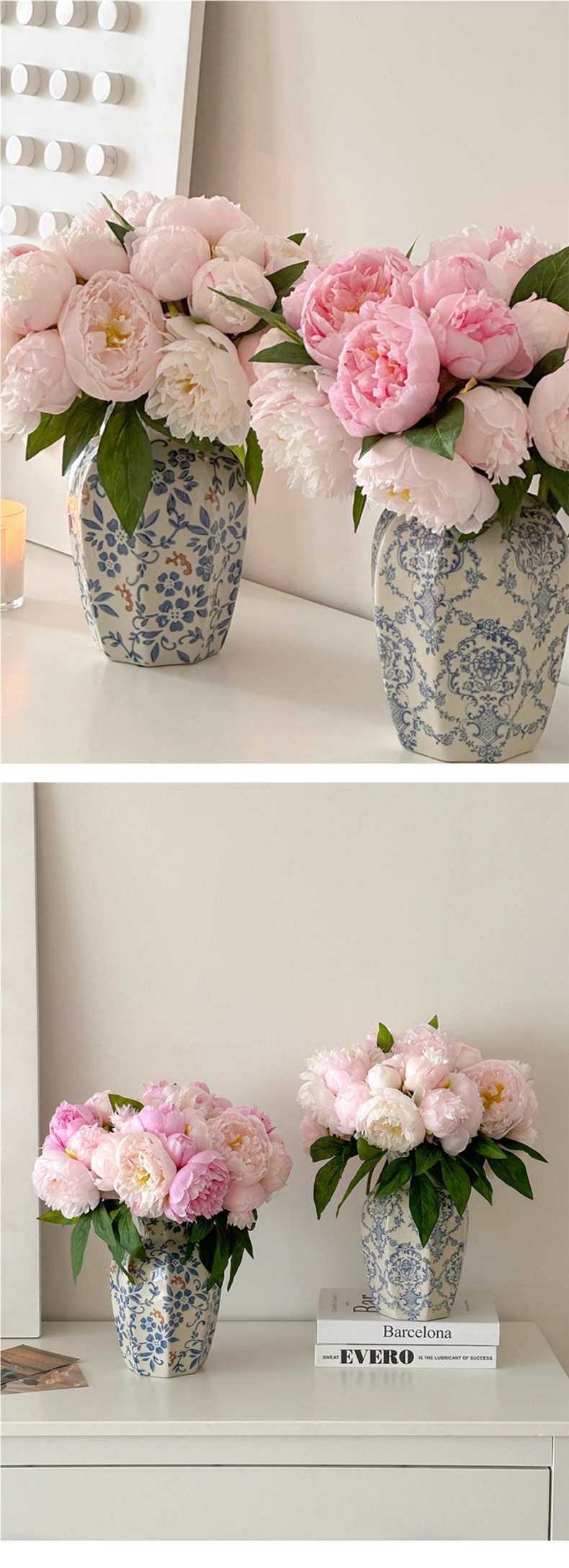 새로운 파란색과 흰색 도자기 꽃병, 새로운 중국 스타일 장식품, 거실 꽃꽂이, 입구 장식, 고대 스타일 모란 꽃꽂이