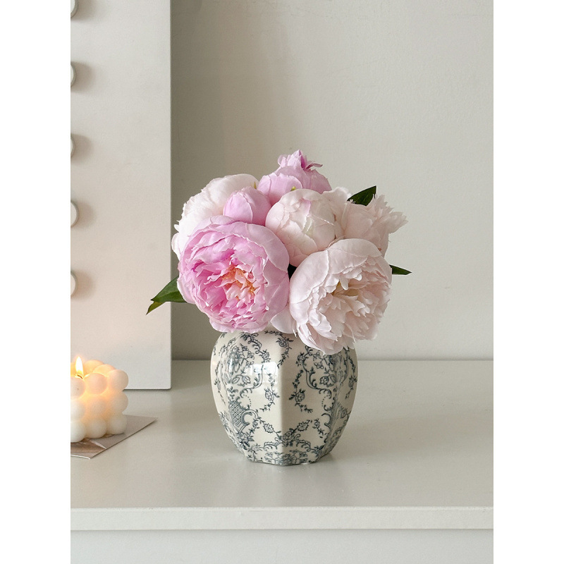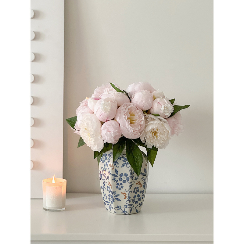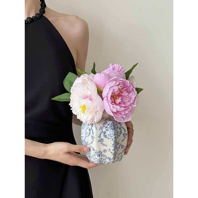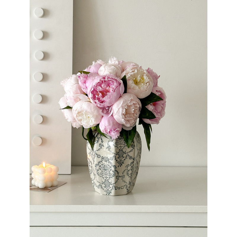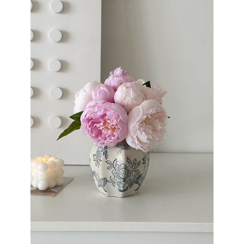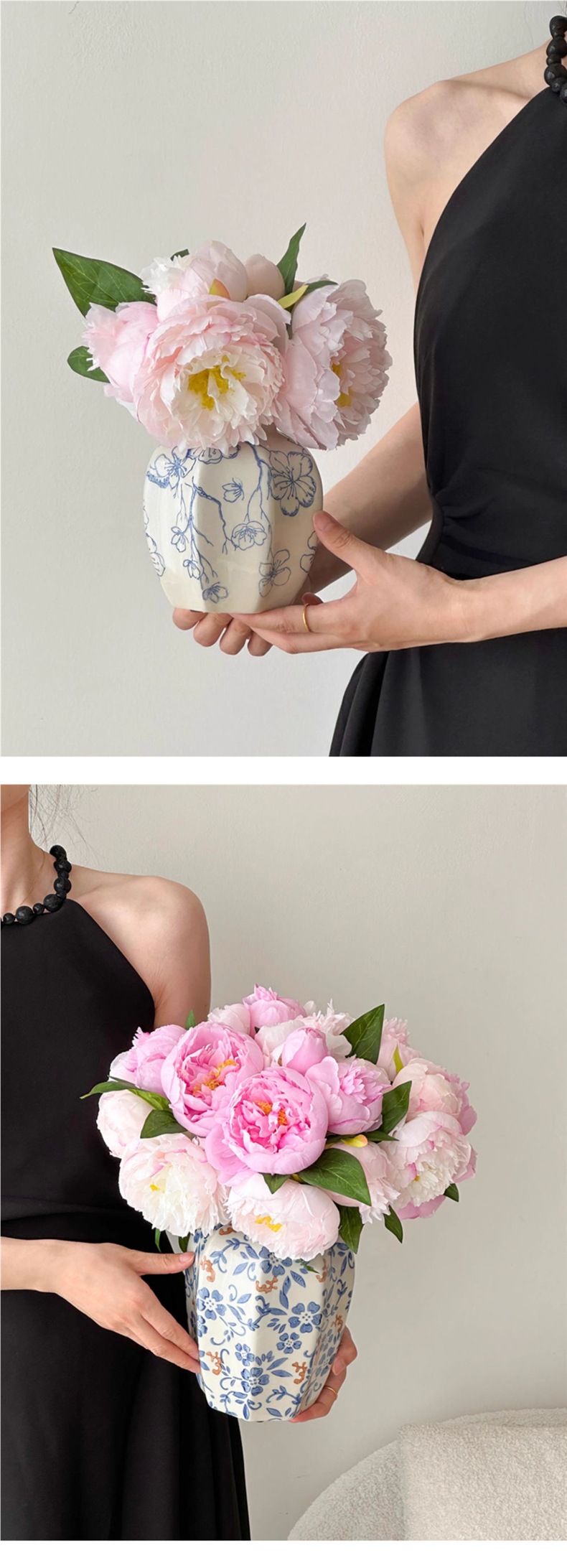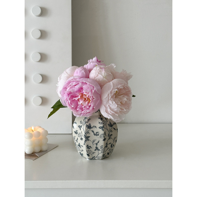 새로운 파란색과 흰색 도자기 꽃병, 새로운 중국 스타일 장식품, 거실 꽃꽂이, 입구 장식, 고대 스타일 모란 꽃꽂이