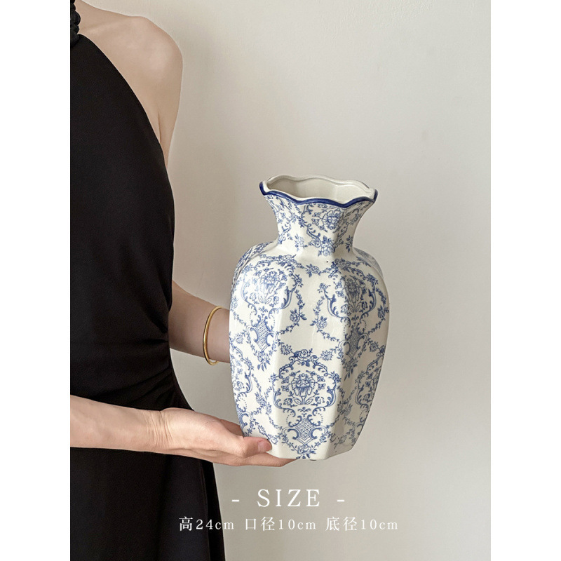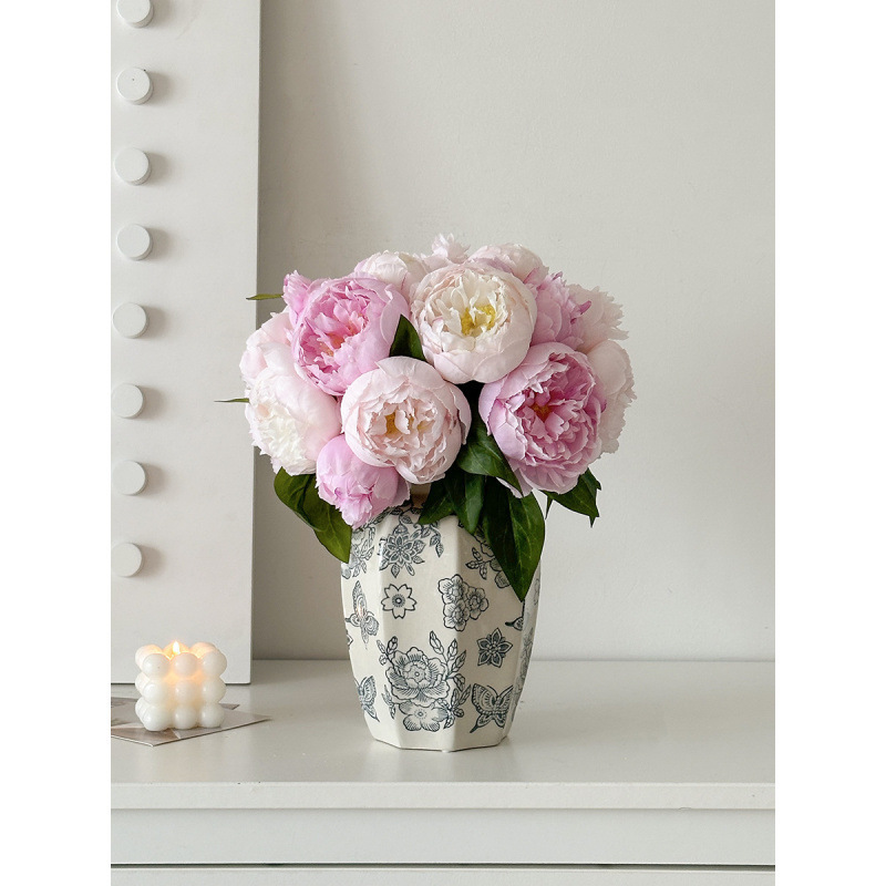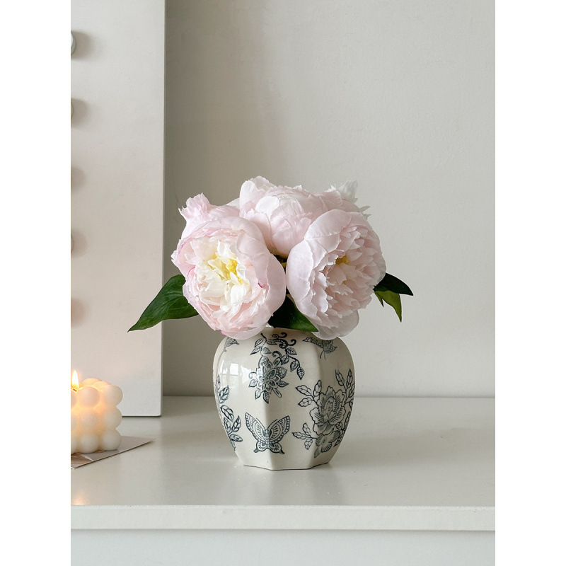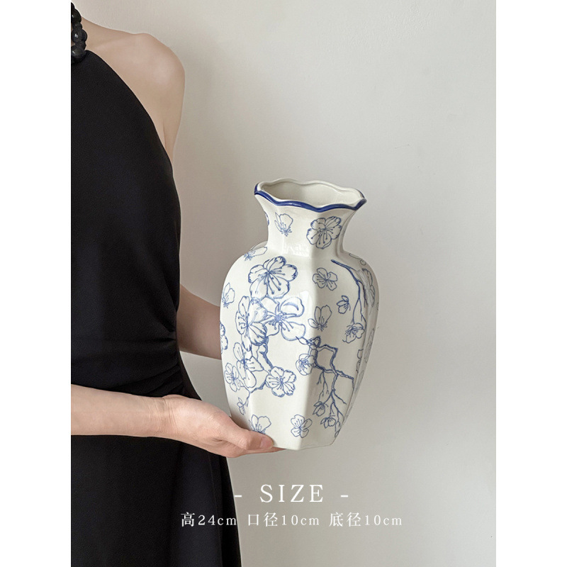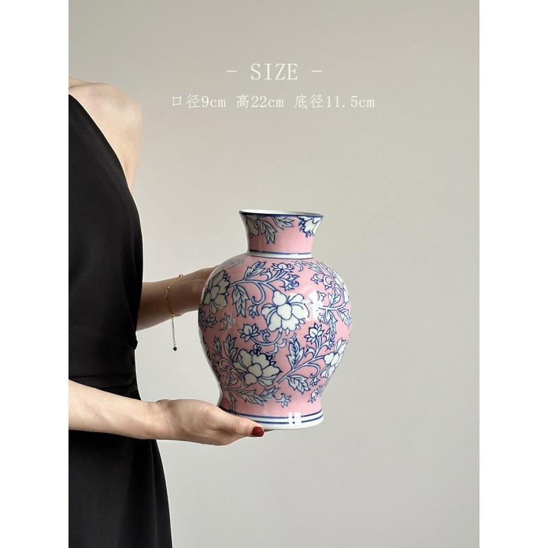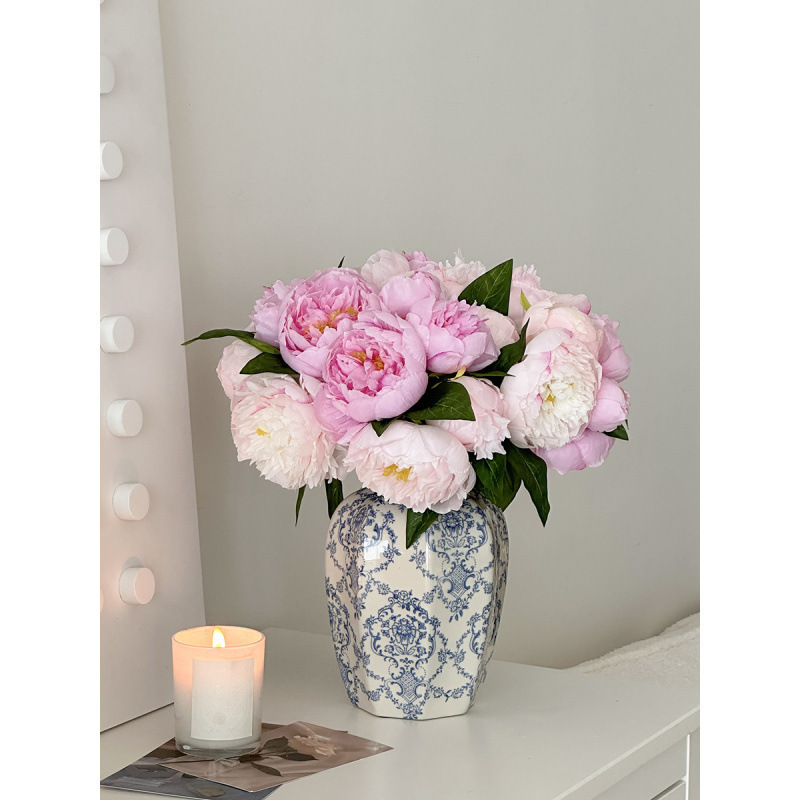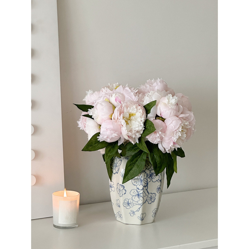 새로운 파란색과 흰색 도자기 꽃병, 새로운 중국 스타일 장식품, 거실 꽃꽂이, 입구 장식, 고대 스타일 모란 꽃꽂이