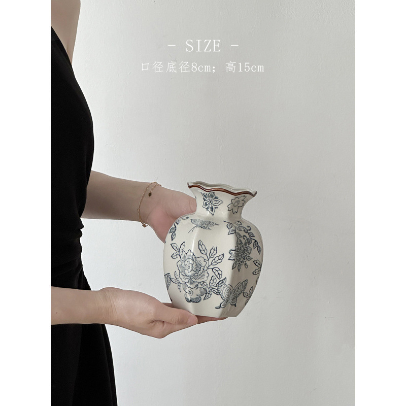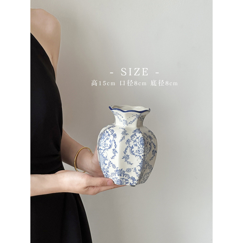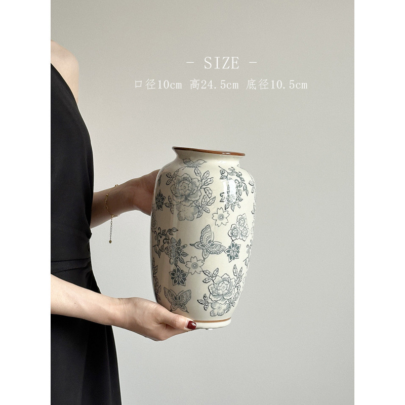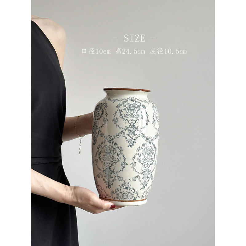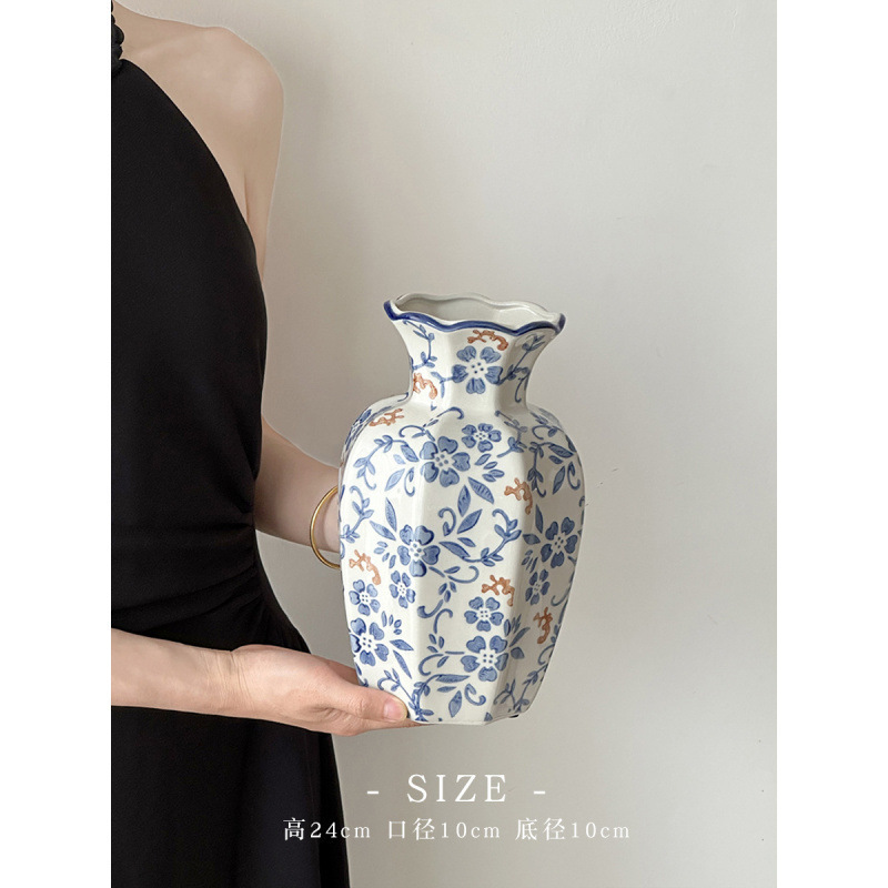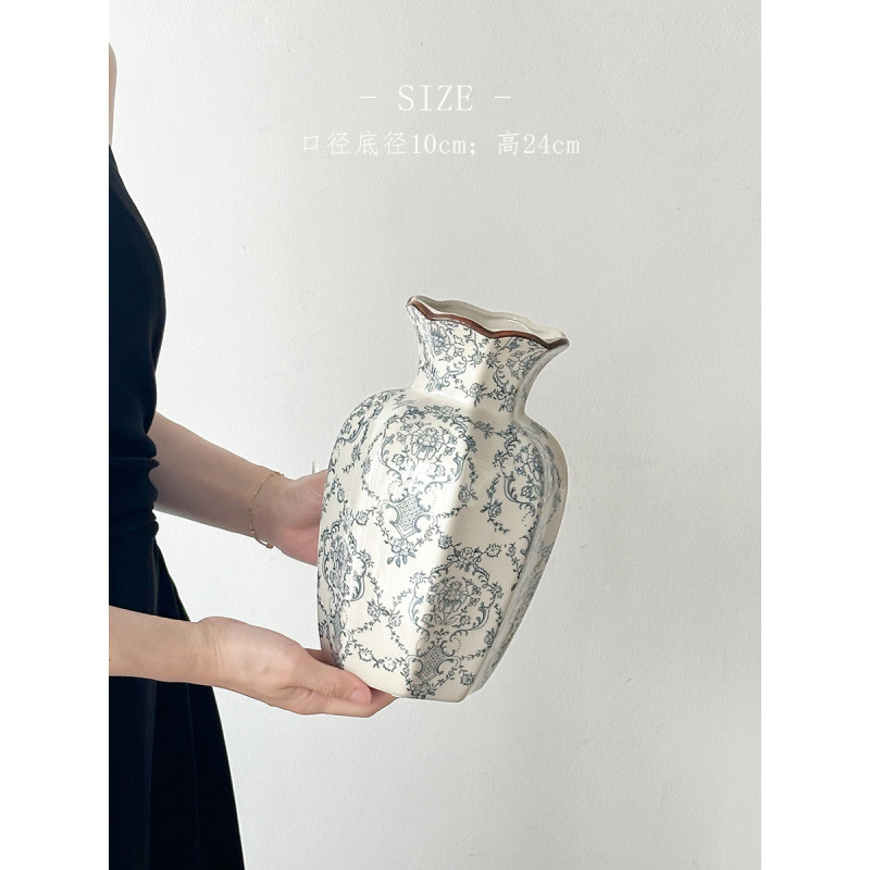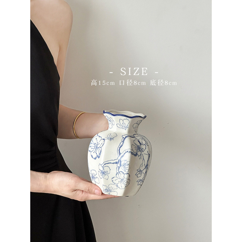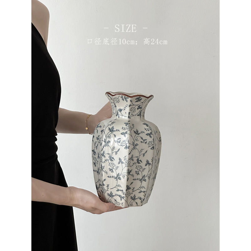 새로운 파란색과 흰색 도자기 꽃병, 새로운 중국 스타일 장식품, 거실 꽃꽂이, 입구 장식, 고대 스타일 모란 꽃꽂이