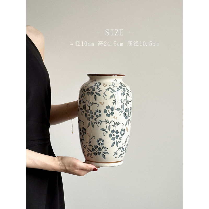 새로운 파란색과 흰색 도자기 꽃병, 새로운 중국 스타일 장식품, 거실 꽃꽂이, 입구 장식, 고대 스타일 모란 꽃꽂이스토어 가기