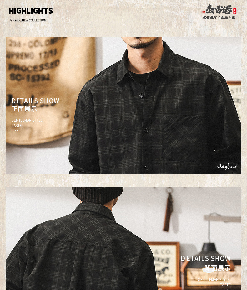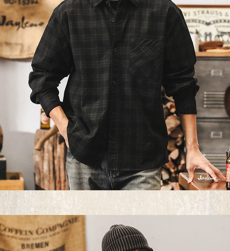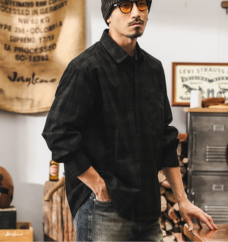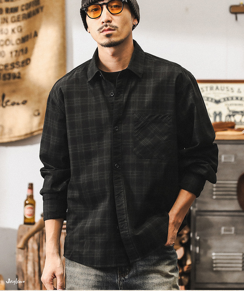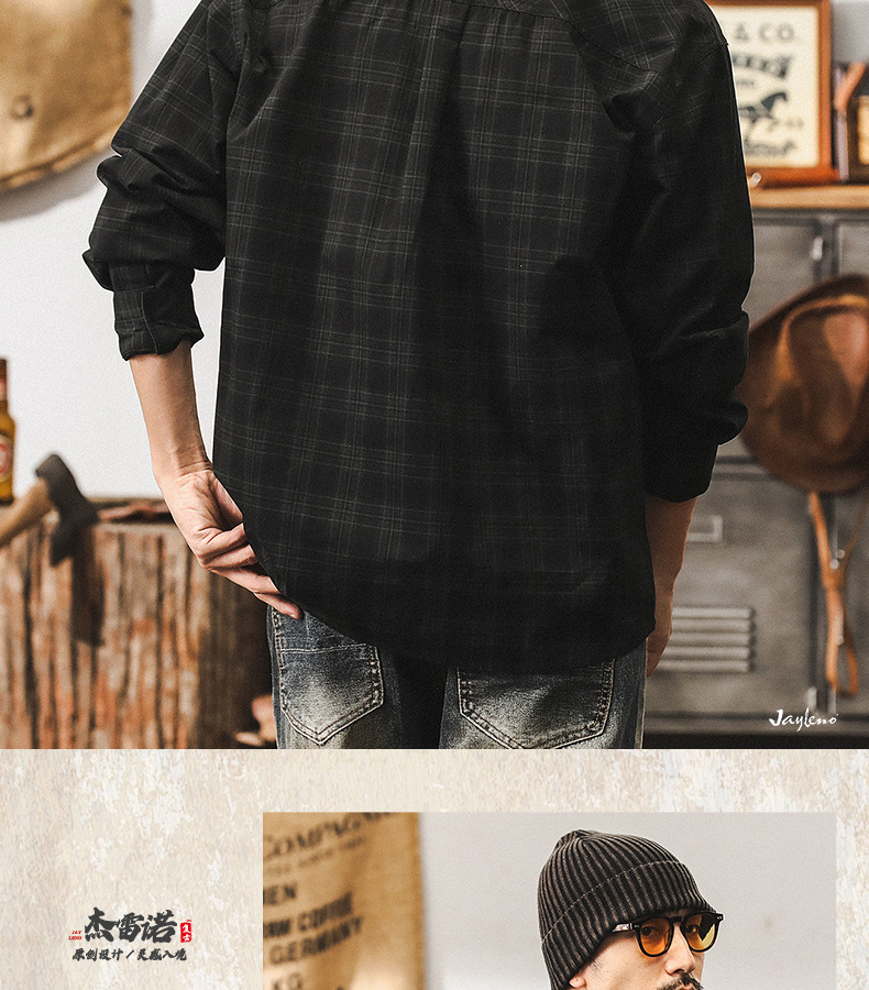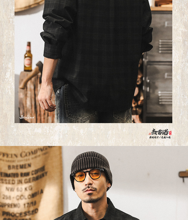아메리칸 레트로 체크 무늬 셔츠 남성 긴팔 가을 트렌디 브랜드 하이 엔드 핸섬 셔츠 남성 루즈 탑 재킷